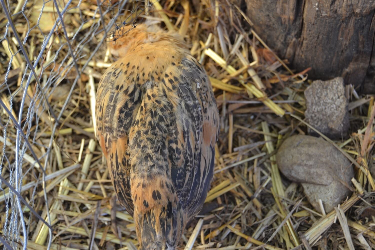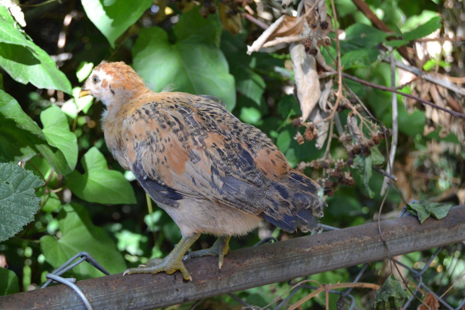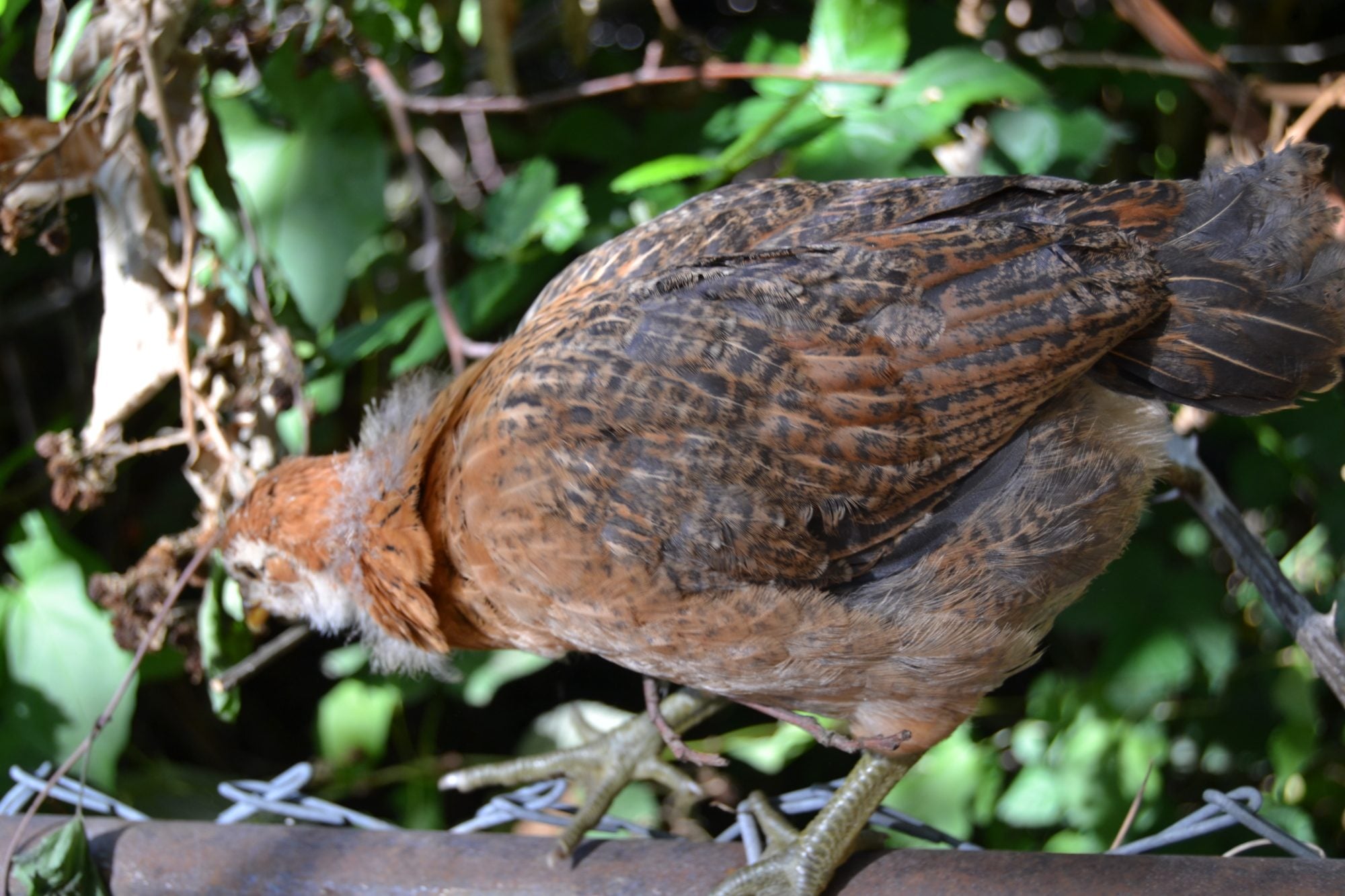 Now this is Gidget. Pretty sure she is a pullet. Has a bit of a splotchy pattern and brown patches but seems to be the same on both sides.