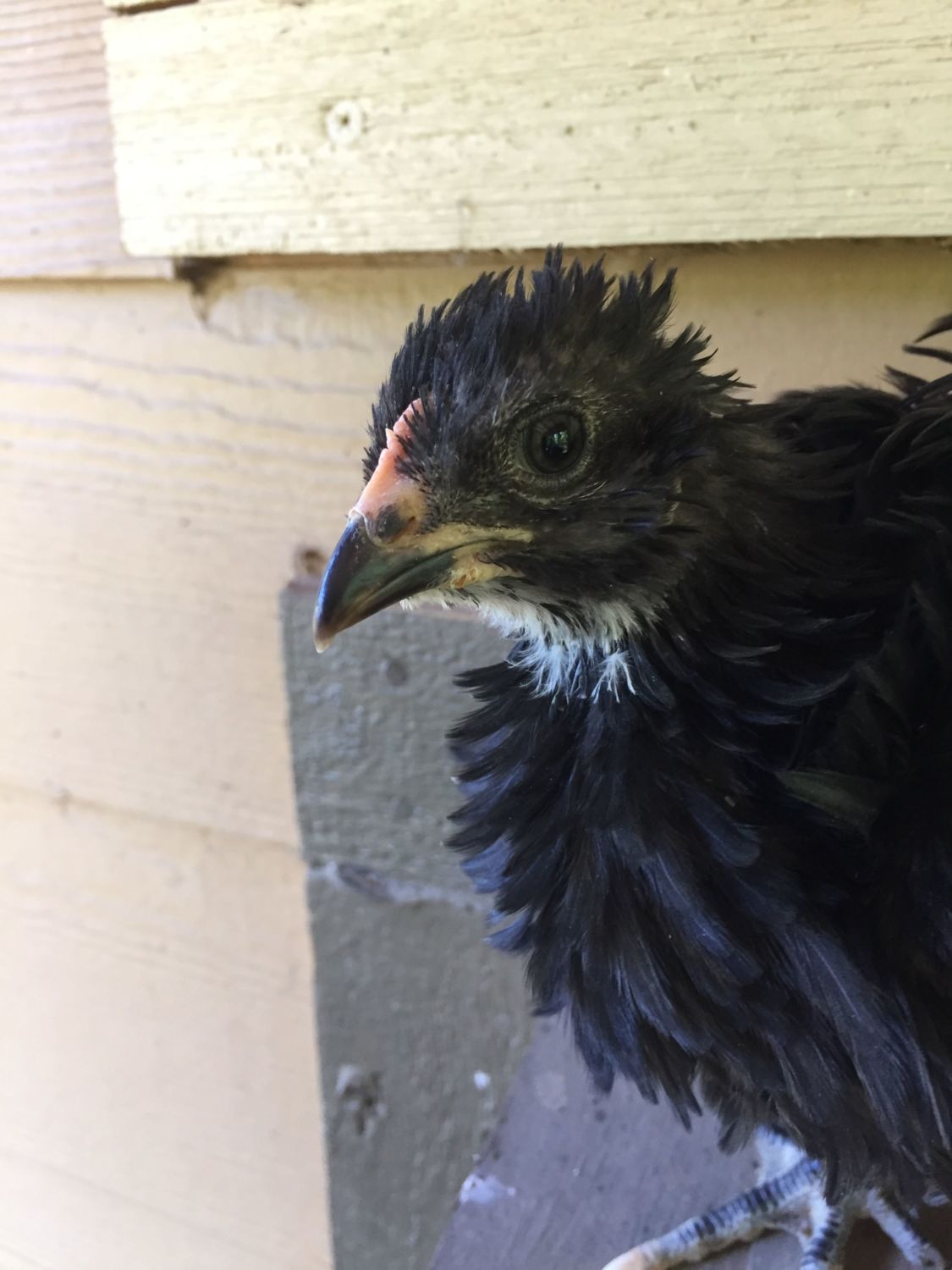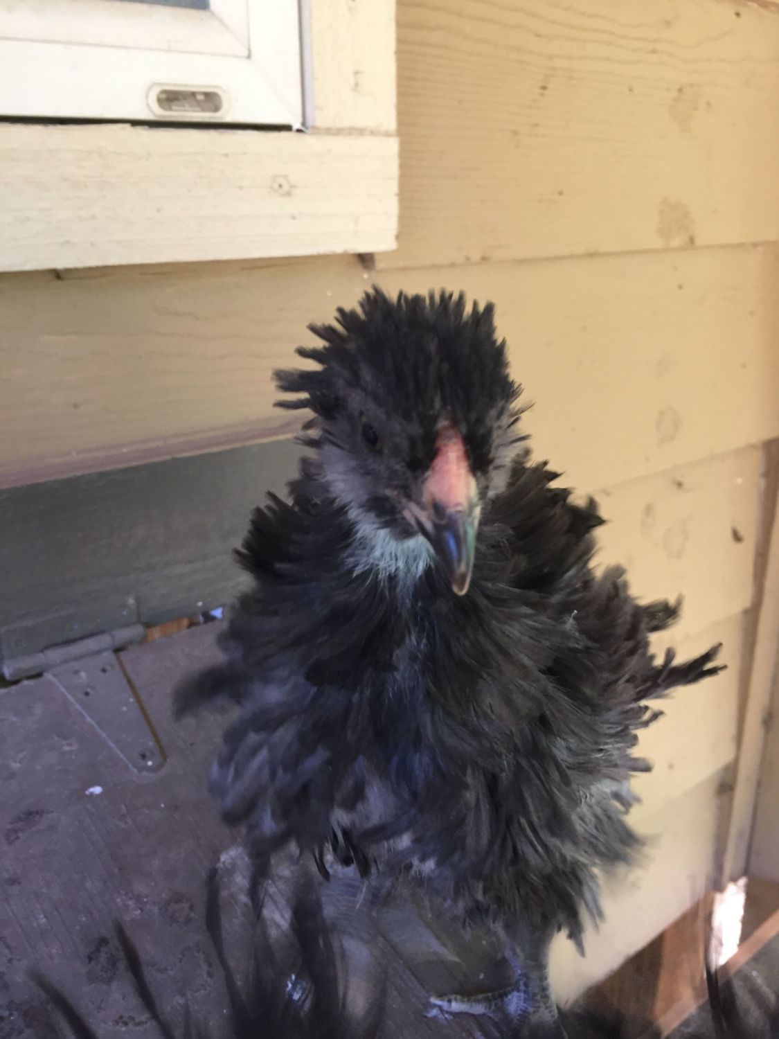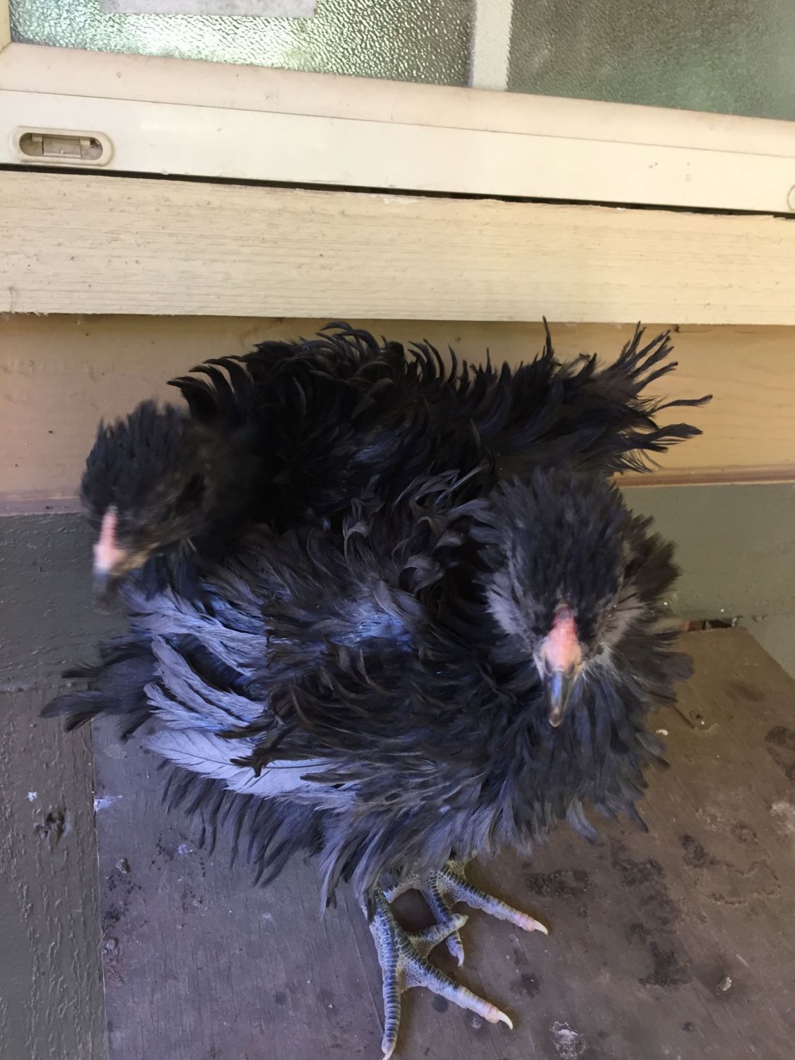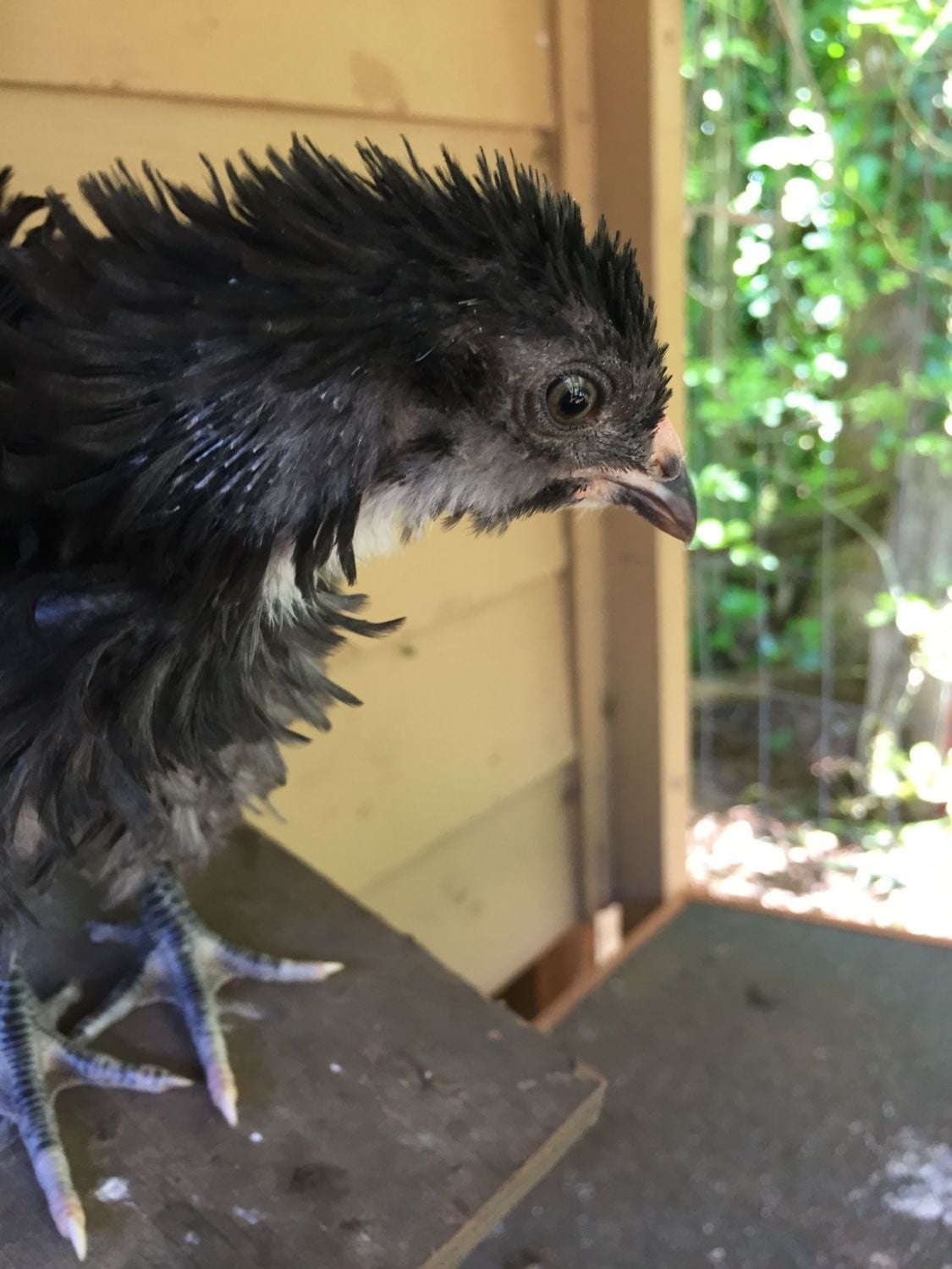 Chick #2 Frizzled Easter Egger, black. I have no idea if this is Heather or Heath. Easter Eggers confuse me.