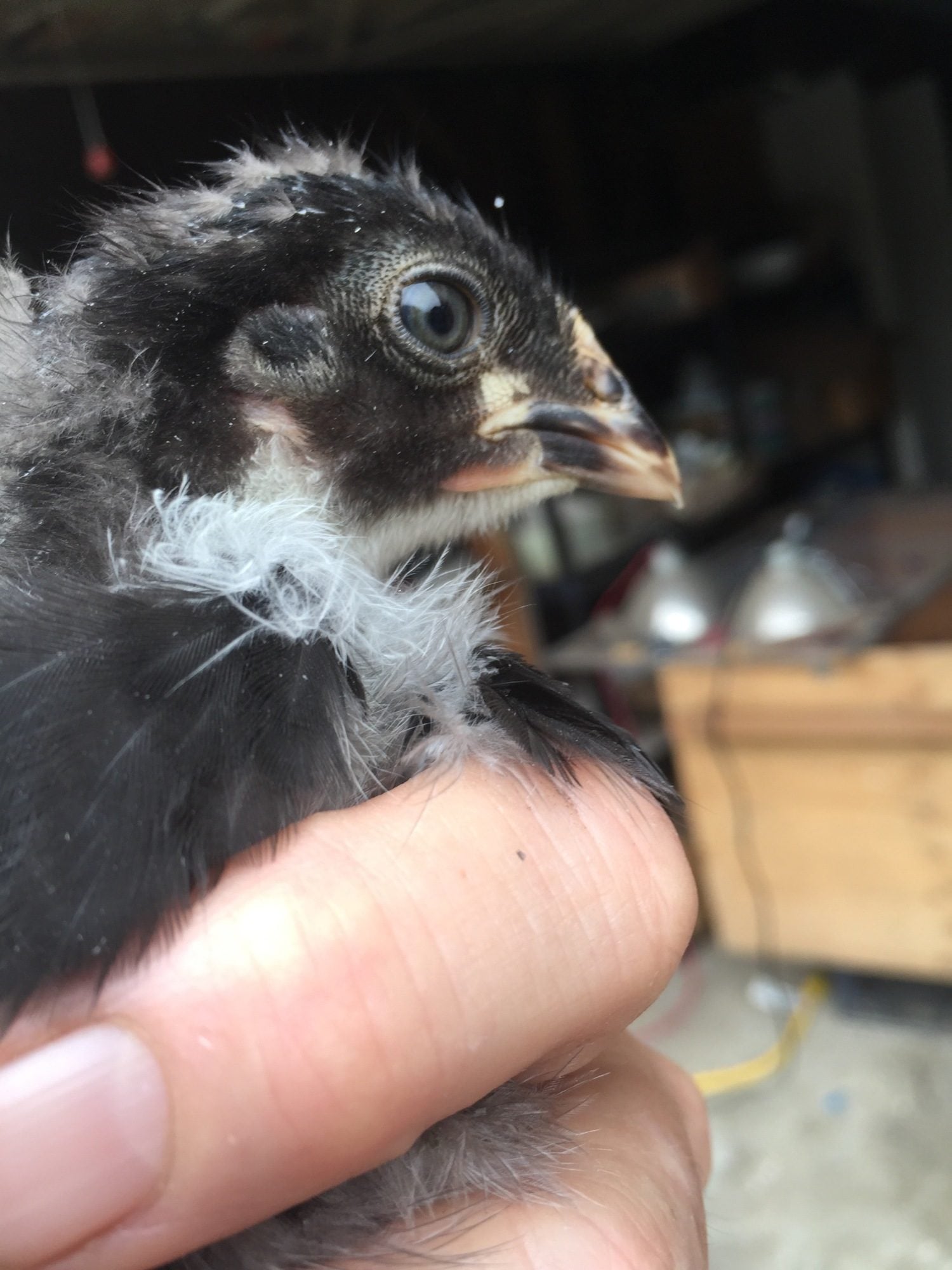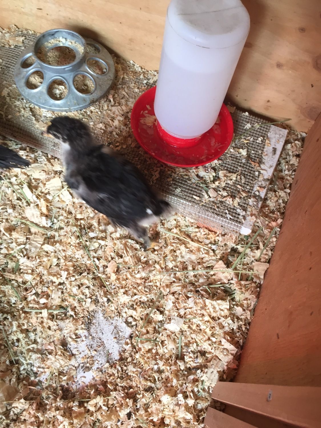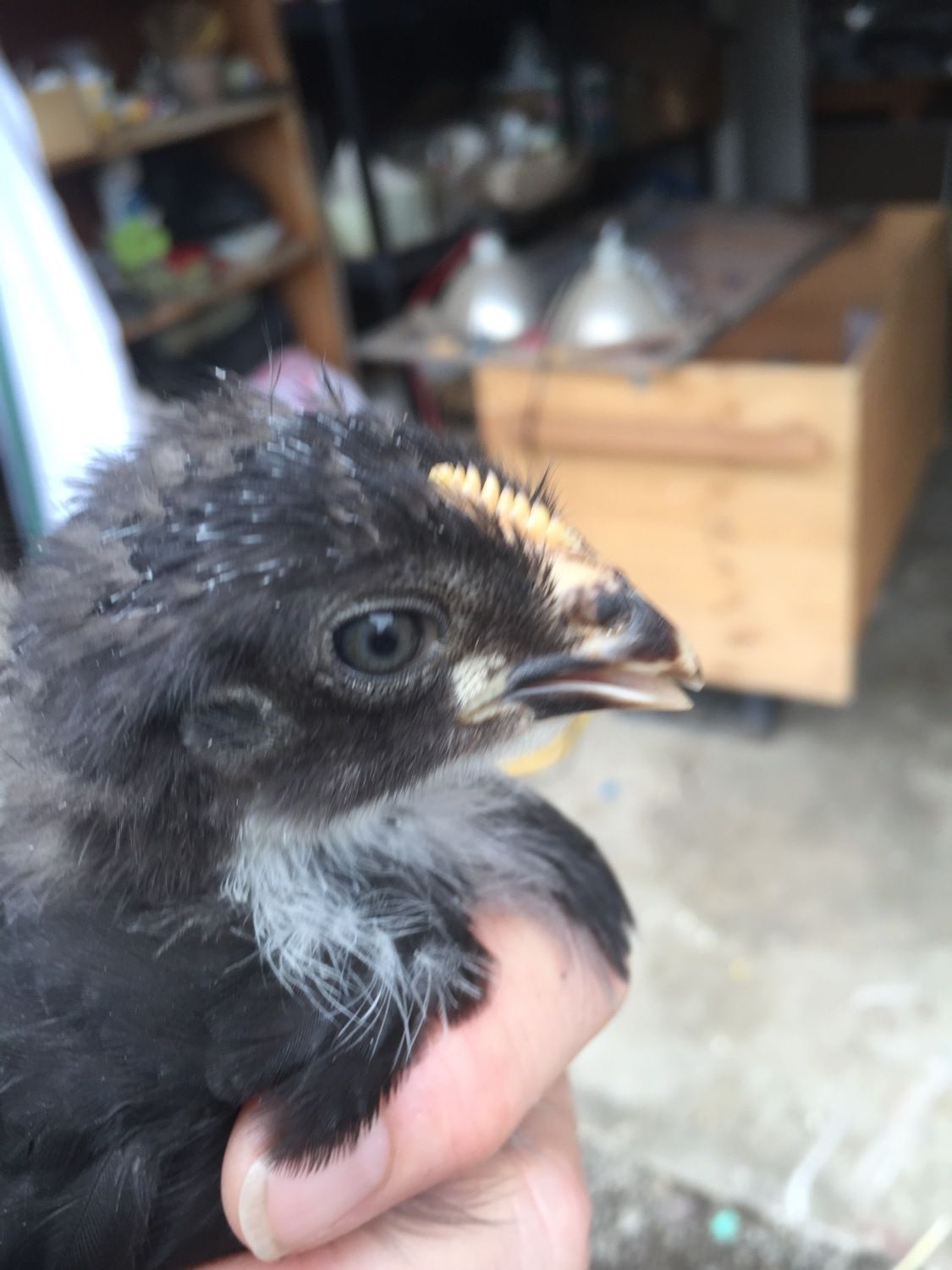 hoping someone can enlighten me on the BCM development. I have two chicks left (others sold). One is almost all feathered on wings, back, starting on chest and kind of a long straight tail that "she" holds down sort of. The other one is way slower in feathering, short tail that is upright. pics will follow! i see NO pink on comb. the more feathered one has tiny tiny wattles sort of but i do not see pink. the other has no sign yet. so two birds...3 pics of bird #2 then it will switch to bird #1.unless i can't figure out how to do that then i will just do another post! bird #1 has 4 pics.