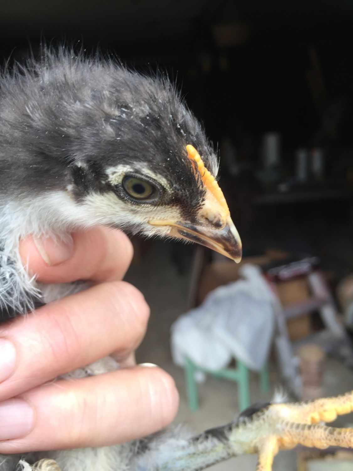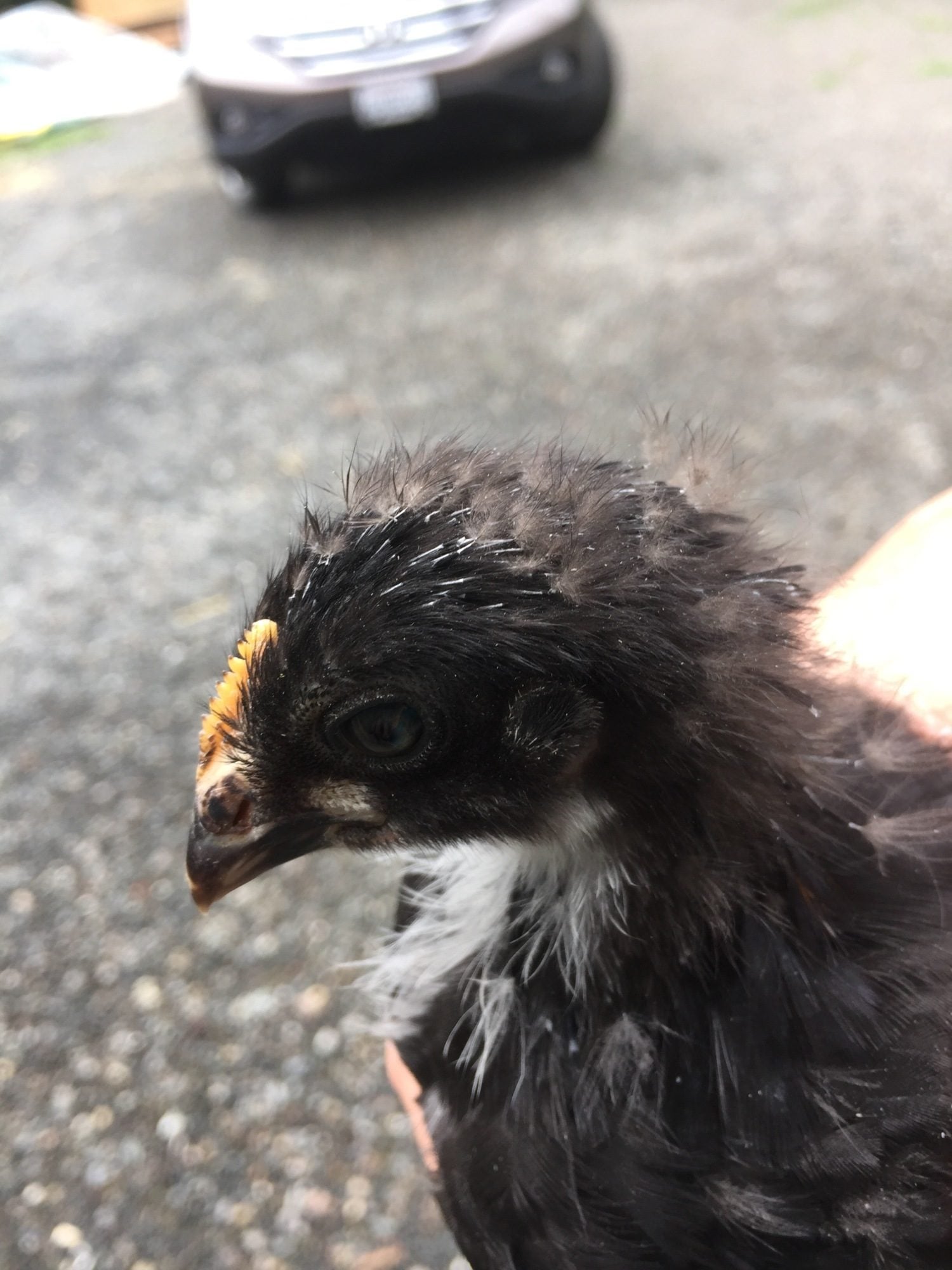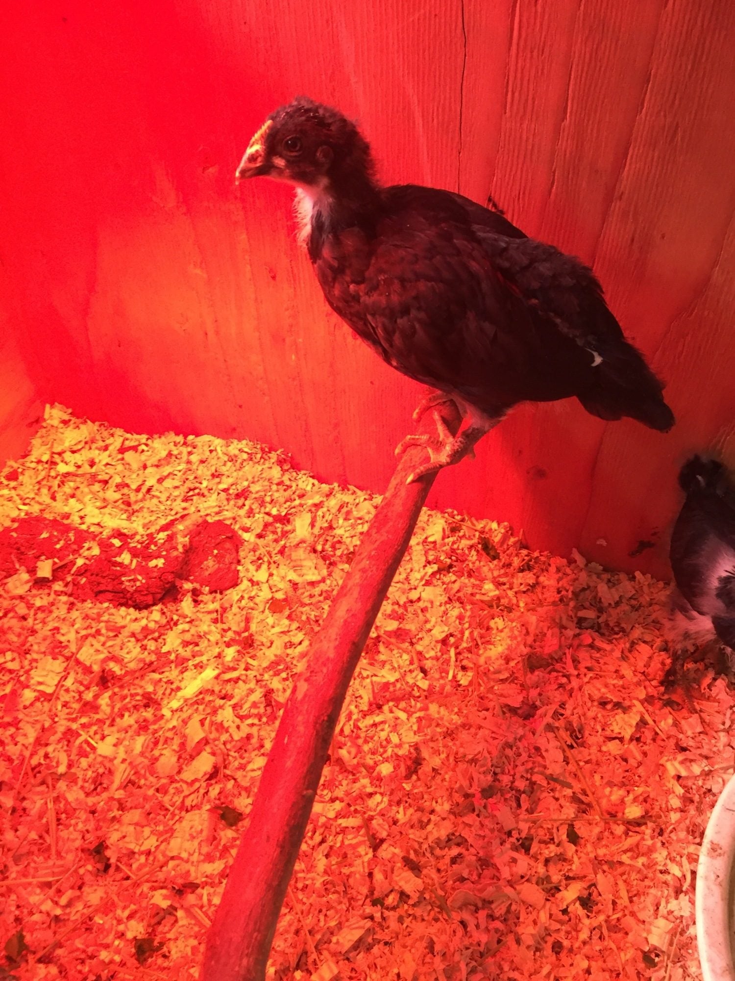 hoping someone can enlighten me on the BCM development. I have two chicks left (others sold). One is almost all feathered on wings, back, starting on chest and kind of a long straight tail that "she" holds down sort of. The other one is way slower in feathering, short tail that is upright. pics will follow! i see NO pink on comb. the more feathered one has tiny tiny wattles sort of but i do not see pink. the other has no sign yet. so two birds...3 pics of bird #2 then it will switch to bird #1.unless i can't figure out how to do that then i will just do another post! bird #1 has 4 pics.