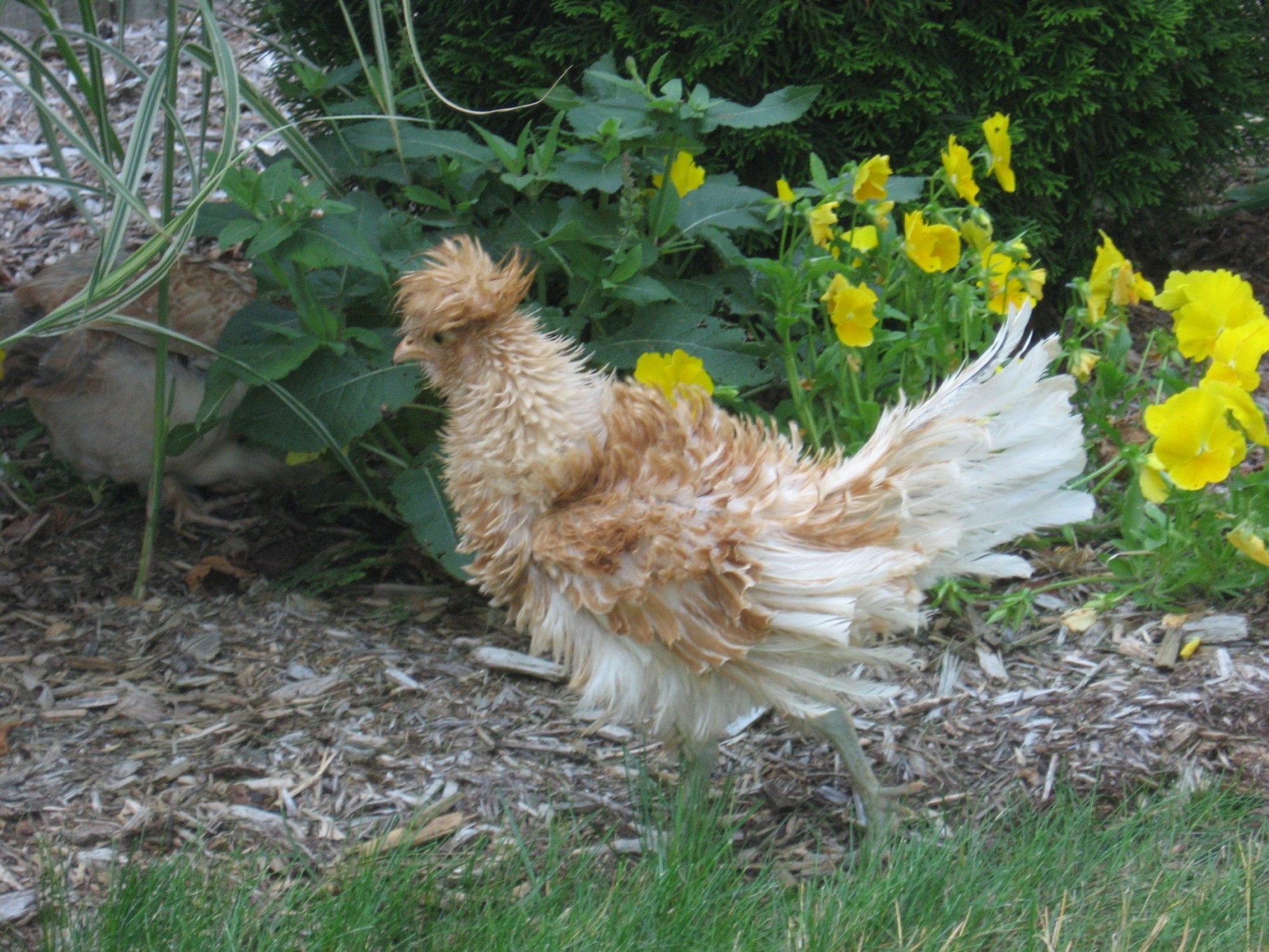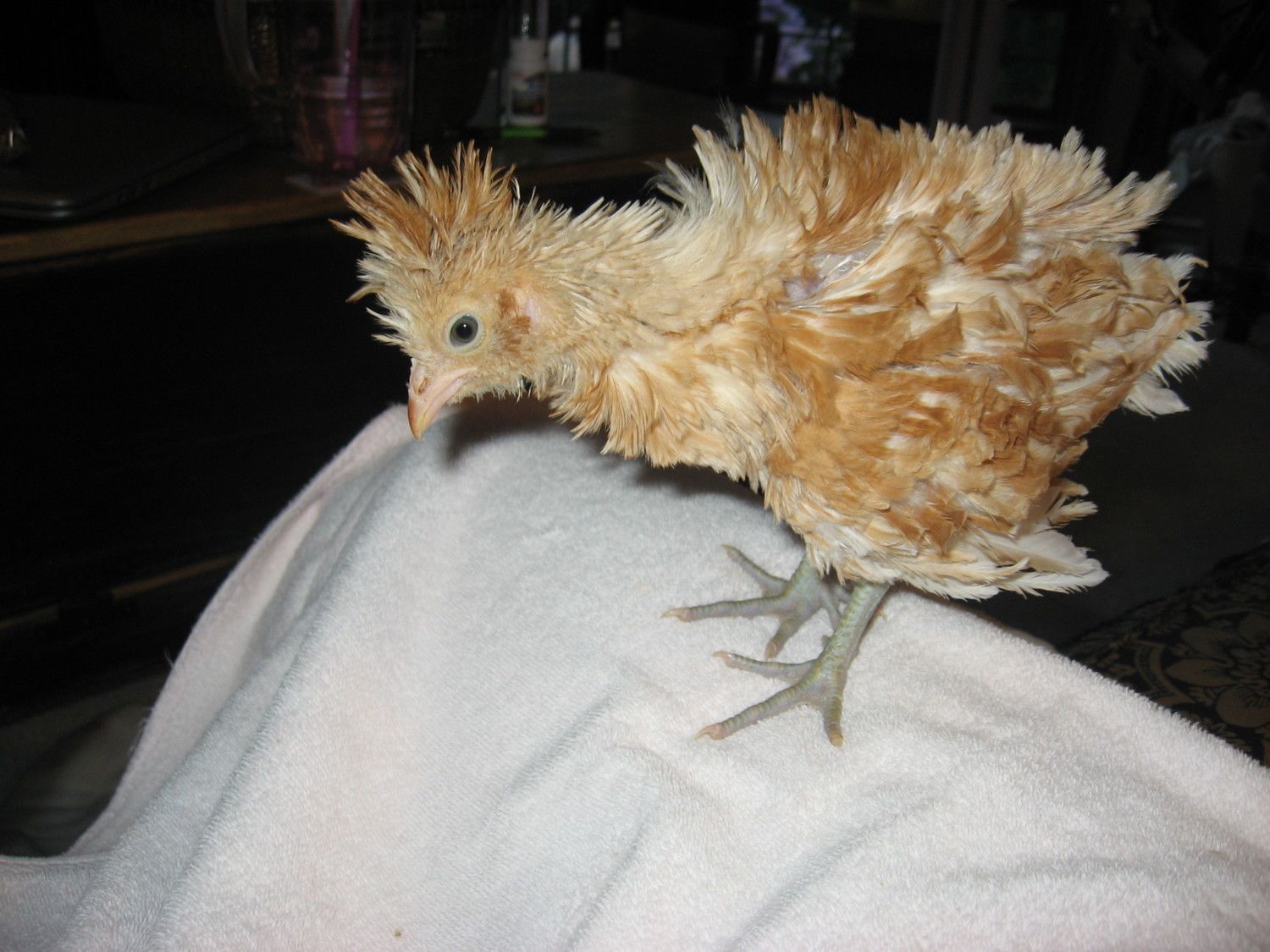 No no no!!!!! My Ms Frizz the polish frizzle is crowing (possible polish cochin mix). I am broken hearted. She is somewhere around 12 - 14 weeks. Recently a friend (who has had chickens since she was a child) assured me she was definitely a hen from her small pale comb and no sign of wattle. Since that visit 2 1/2 weeks ago Frizzy's comb suddenly took on a life of it's own. It has gotten bigger and wavy and redder. and 5 days ago she began crowing. But, there is still no sign of wattle. No sign of wattle at all. Is this normal? I have read here that some hen's will crow if there is no rooster in the flock. She is twice the age of the rest of the flock (8 in all). The layers (Faverolle. Wyandotte, and Dominique) have almost caught up in size although they are half Frizzy's age. She doesn't have the very bushy topper of a full polish hen but she came from a bantam farm that has silkie, cochins, and polish penned together. Frizzle's and sizzles and naked necks. So she could be part cochin. Her topper furls forward instead of back like all the other Polish roo's I have seen. Any thoughts? Male or female? Will a wattle suddenly start growing as the comb did?