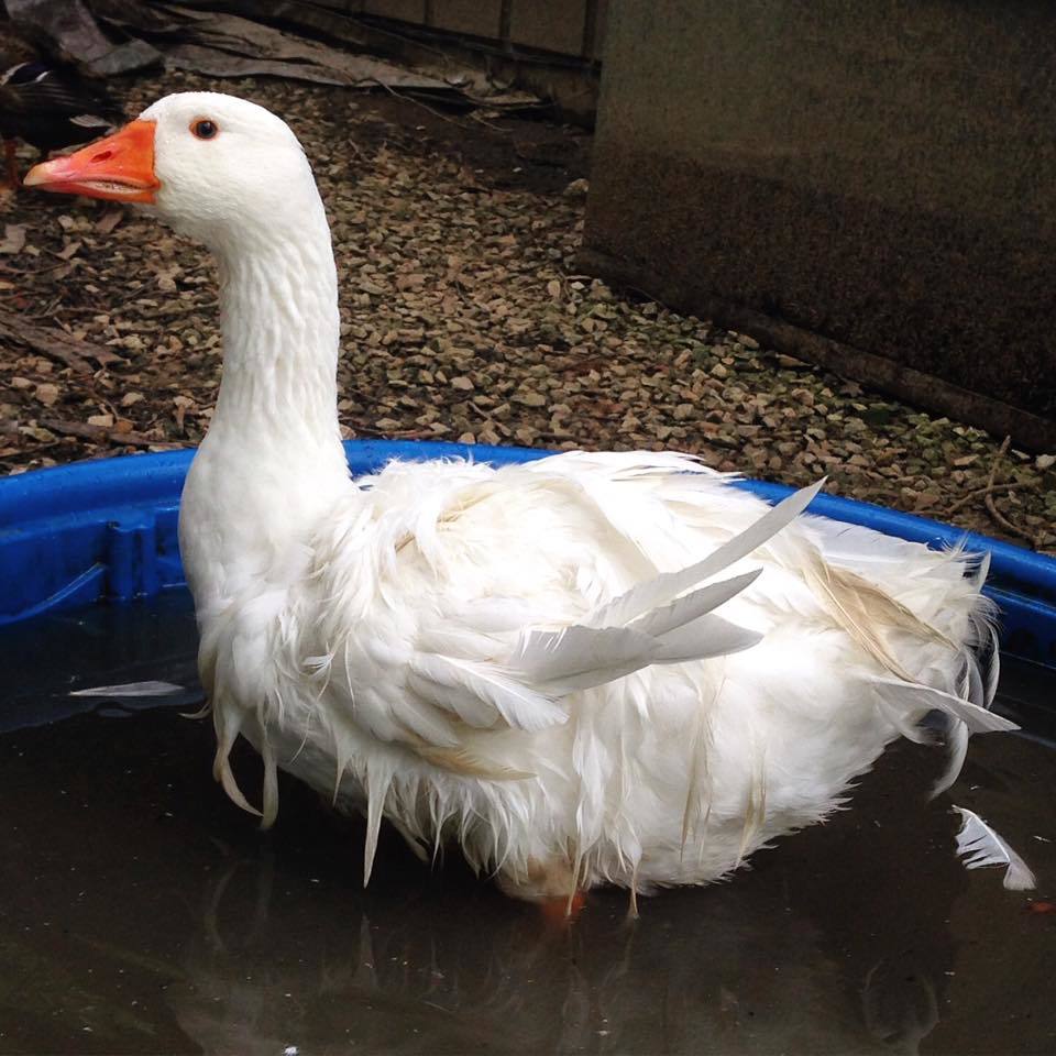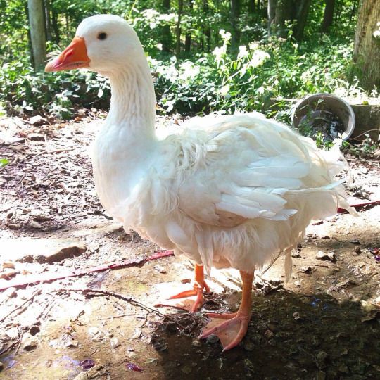 Hey all. I have an approximately 9 month old Sebastopol named Lucy Goosey. S(he) is the friendliest goose I've ever met - never hisses, doesn't chase or nip, loves my ducks, and comes up to me for treats / pets. S(he) does this thing where s(he) makes a hilarious rubber chicken-sounding call when she hears a car coming down the driveway or if someone yells. It is ridiculous and we love it. It's the only sound s(he) makes and it sounds weirdly similar to a human with a kind of low voice making a weird sound (if that makes sense?).