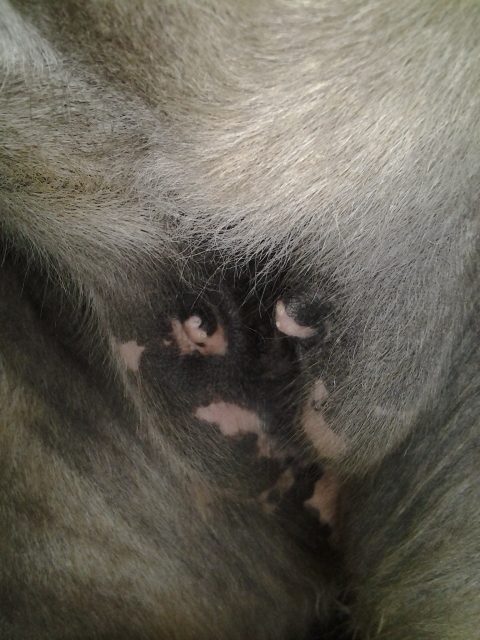 angel has been very pacey since last nite. only stopping to lick the wall, or bite her udder... her teats are now pointing down. chances are she will be staying in today as it is raining!