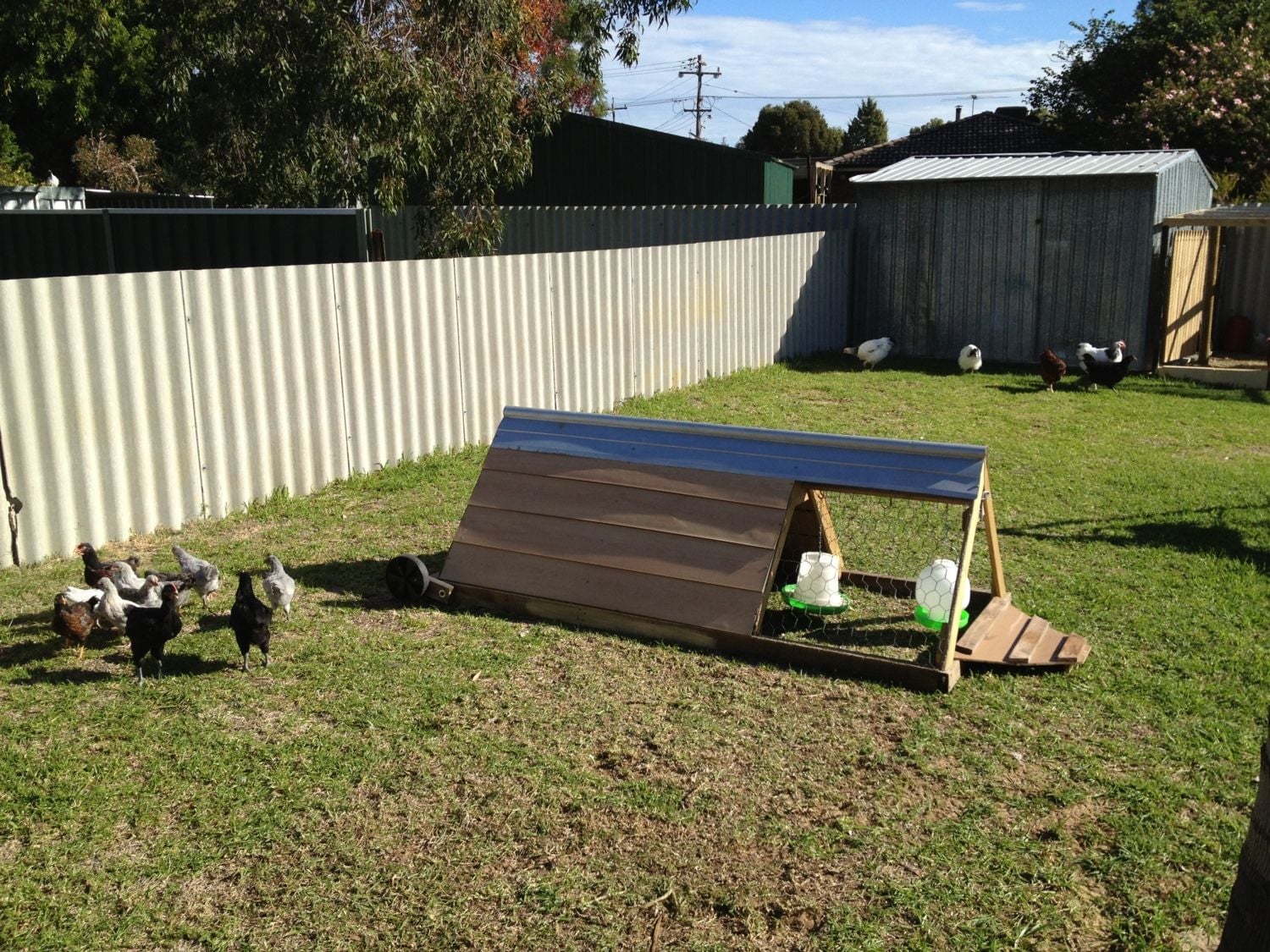Also made this mobile tractor from scraps, has wheels so we can move it about. We are using it as a grow out coop for younger birds.