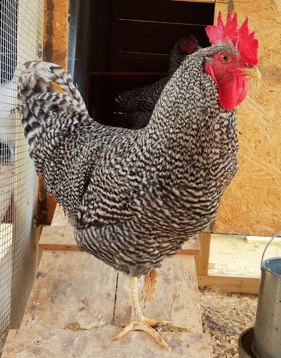 This is roosti my rhodebar roo And of course my 4 week old barred rock cockerel he doesn't have a name yet