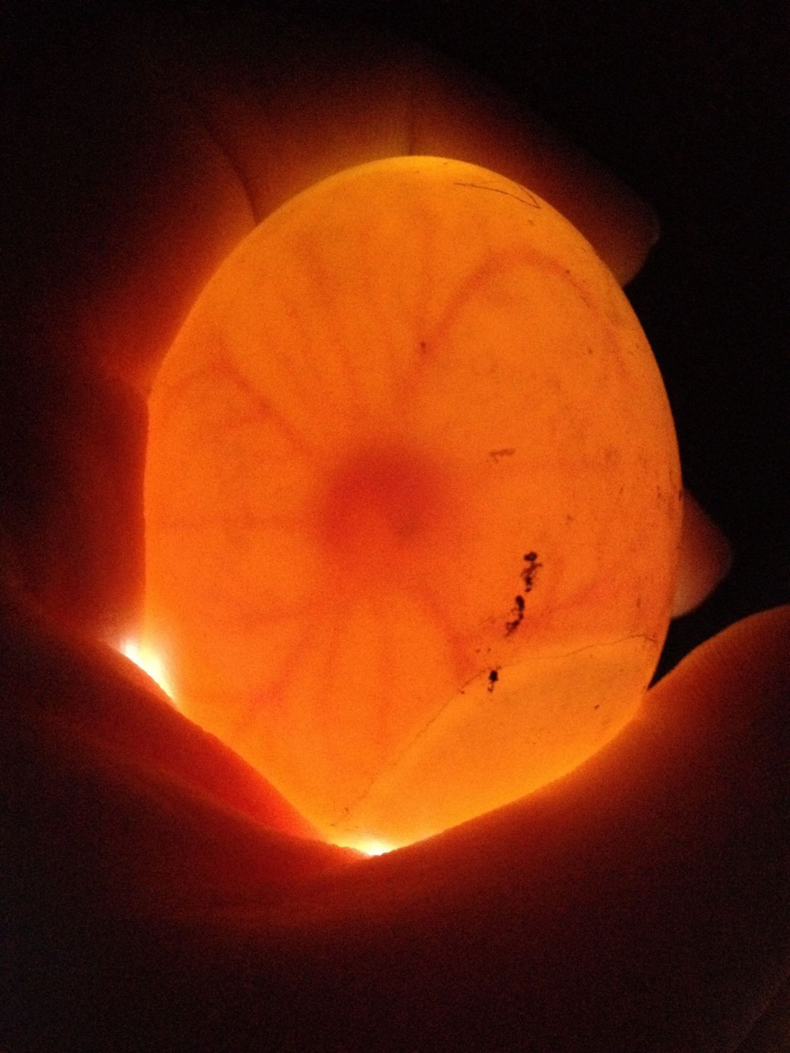 I candled them again last night. 7 of them are alive and kicking and getting really big! I think the two porous ones and one other egg are not developing because i don't see anything going on inside them. There is a noticeable difference between the 7 moving ones and the 3 others. 7 out of 10 is not bad for a first attempt, don't you think? Especially considering i haven't a clue what i am doing! lol Hopefully they will all make it and hatch out some healthy chicks! I need to find my camera and get some pics up. Thanks for the advice guys, i will check them again tomorrow and if i still don't see anything I'm going to remove those ones from the incubator. Should i break them open? The one egg that is not porous looks like it started developing, i can see some veining but not as much as the developing eggs and i can't see any embryo or movement at all.