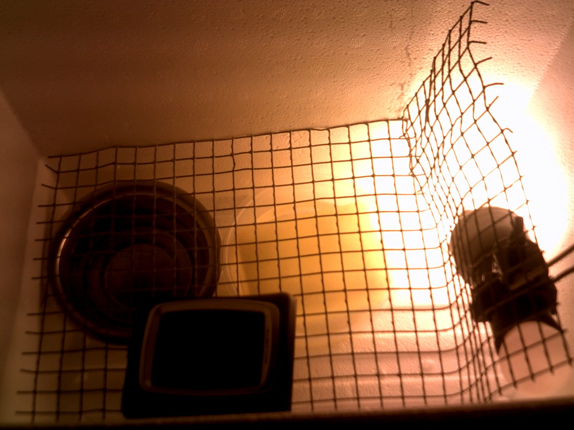 I also added two more shallow dishes of water and lowered the temp to 36.5 - 37C. Or at least i'm trying to keep it at that, it was too low last night, around 36C, and i had to re-ajust the light closer to them at 4am this morning and now it's up at 36.5C.