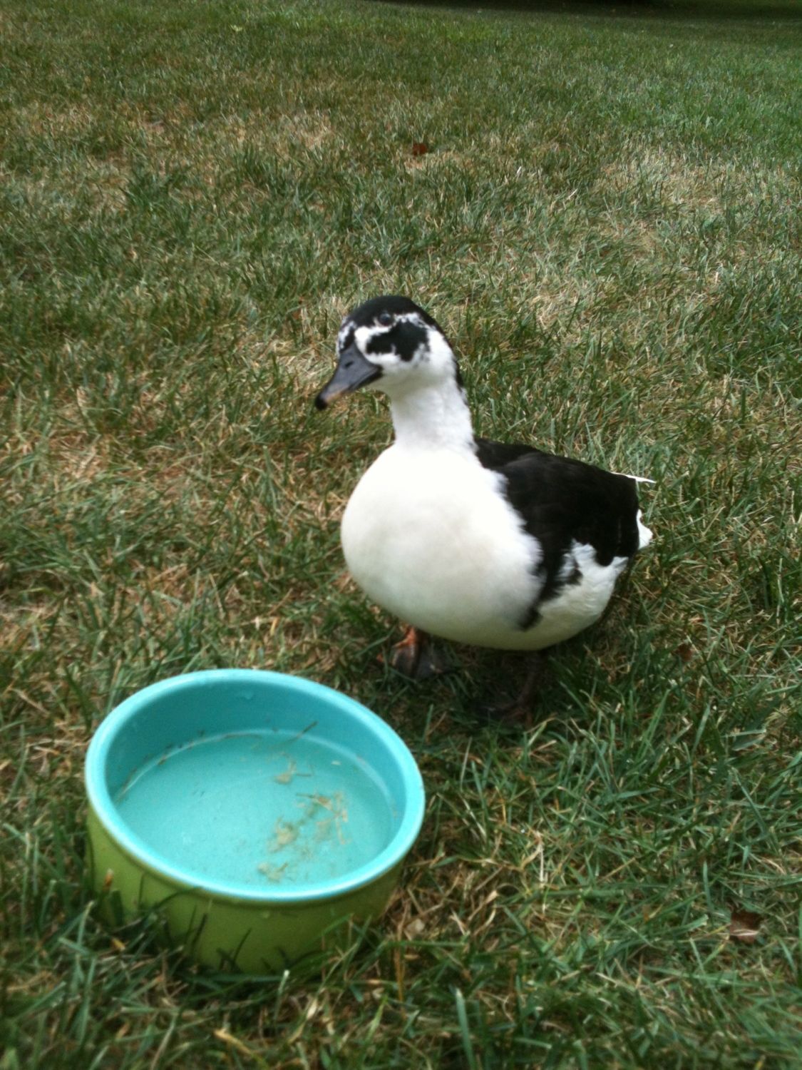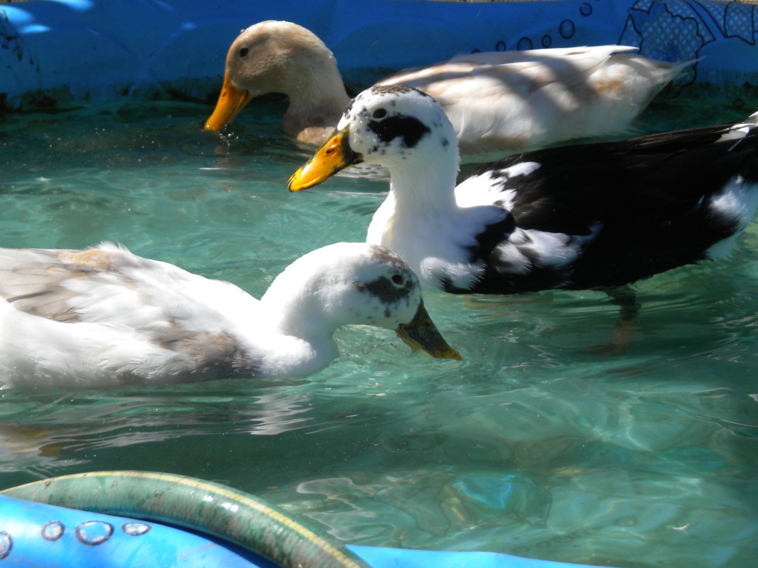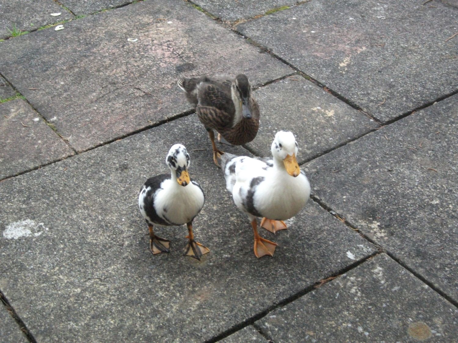 This is my three! Rocky the mallard is the one we rescued from down a cliff, The other two are call ducks bought for company for little Rocky Smudge (middle) and Psycho (on the end) In the first pic they are 1-2 weeks old the second they are about 5 weeks, They are adorable and fun to watch but big trouble! At the moment I am completing their outside run and pond and they are being evicted from the conservatory to duck paradise next week if all goes well!
