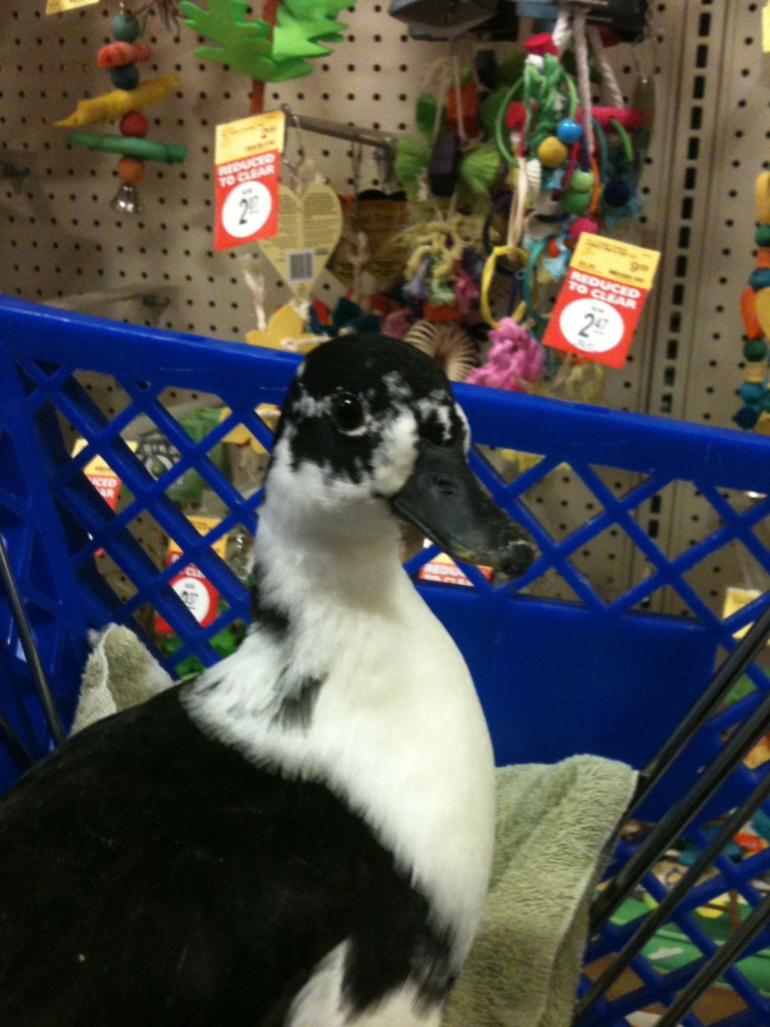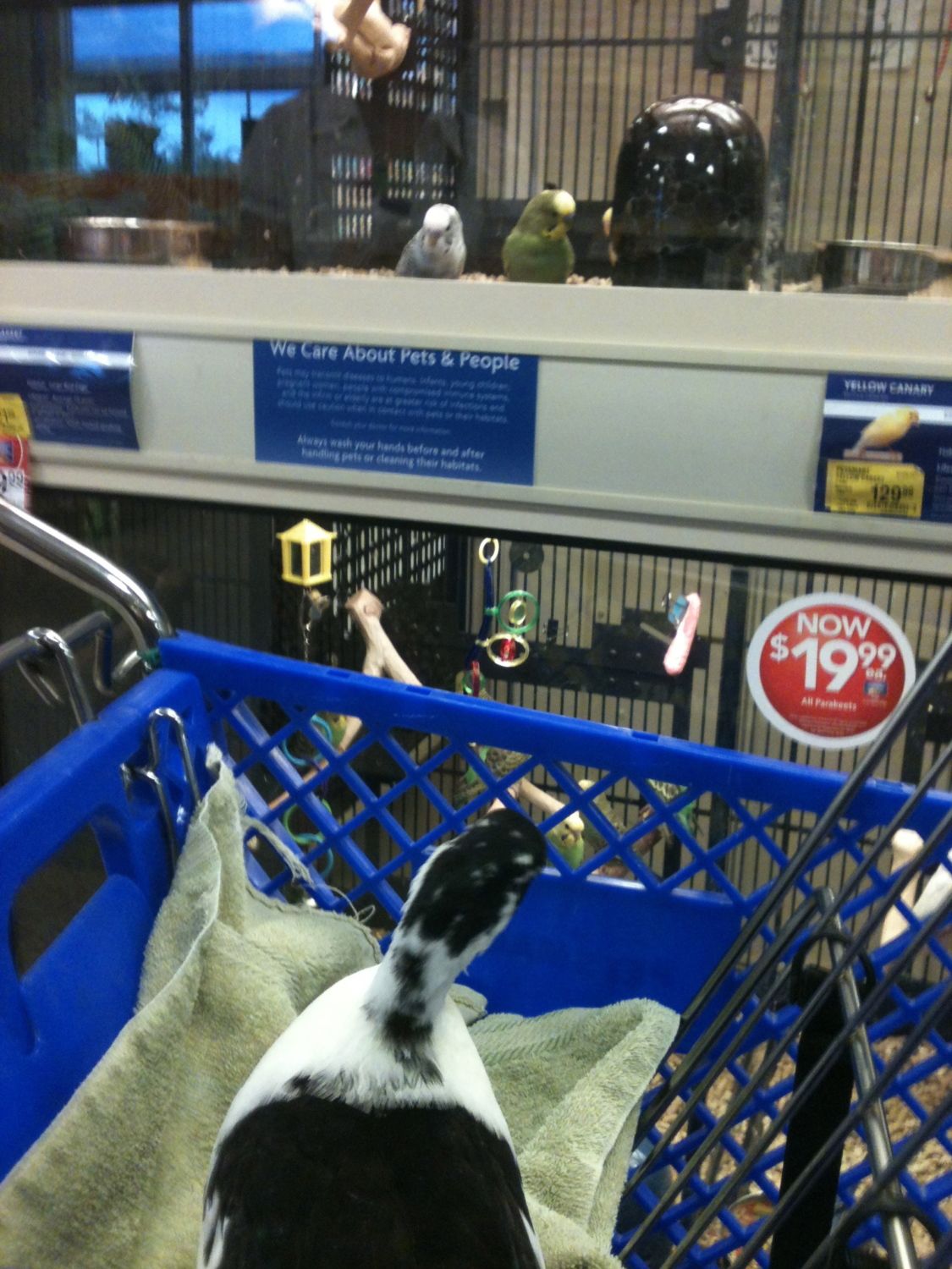 Picking out bird toys at Petsmart. Actually, she was afraid of everything and squawked every time I tried to hold a toy up by her.