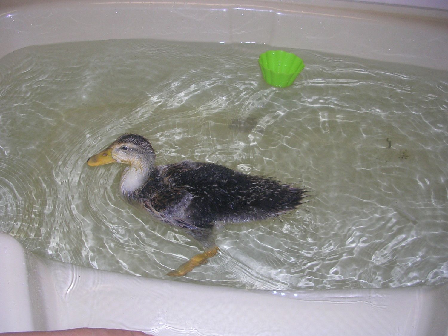 This is Shifu she is 5 weeks old today, she is a jumbo pekin/rouen mix. She also seems to have turned into a house duck lol, I had her outside but the rest of the flock ignored her and the roosters were mean to her so I brought her back in. I will keep trying to intergrate her to the rest of the flock but in the mean time she's indoors.