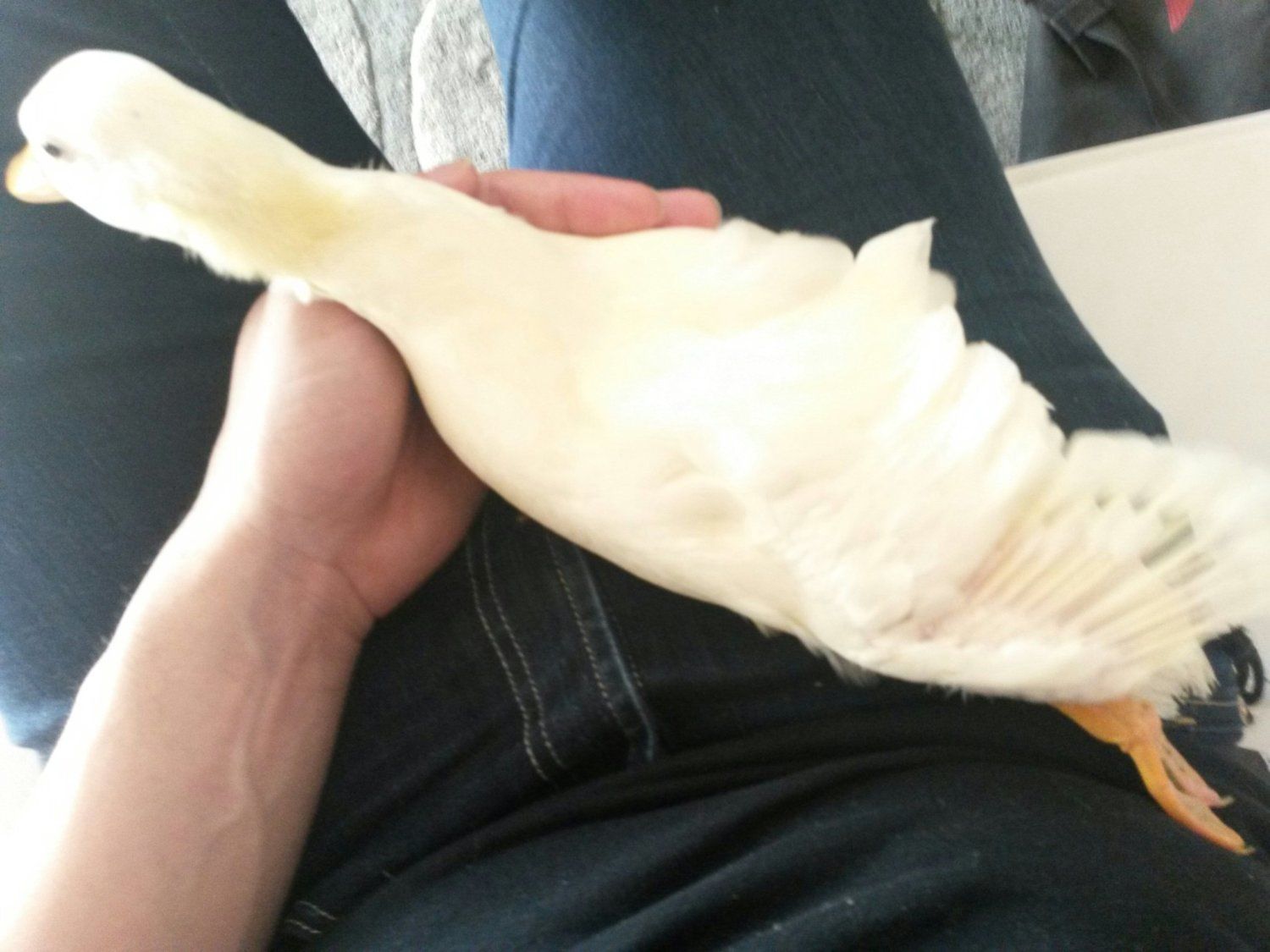 Hehe, thanks! Sometimes I still wish she was the tiny fluffball she was when she hatched, but she's grown into a gorgeous white call duck. <3
