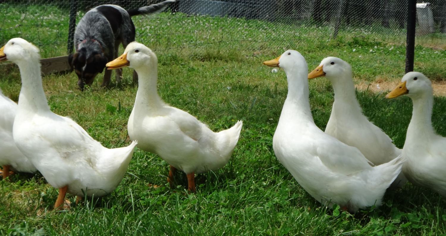 This is Shifu , my one and only hatch survivor. He thinks he's human and prefers to hang with the kids than the other ducks. He is a Jumbo Pekin/Rouen mix.