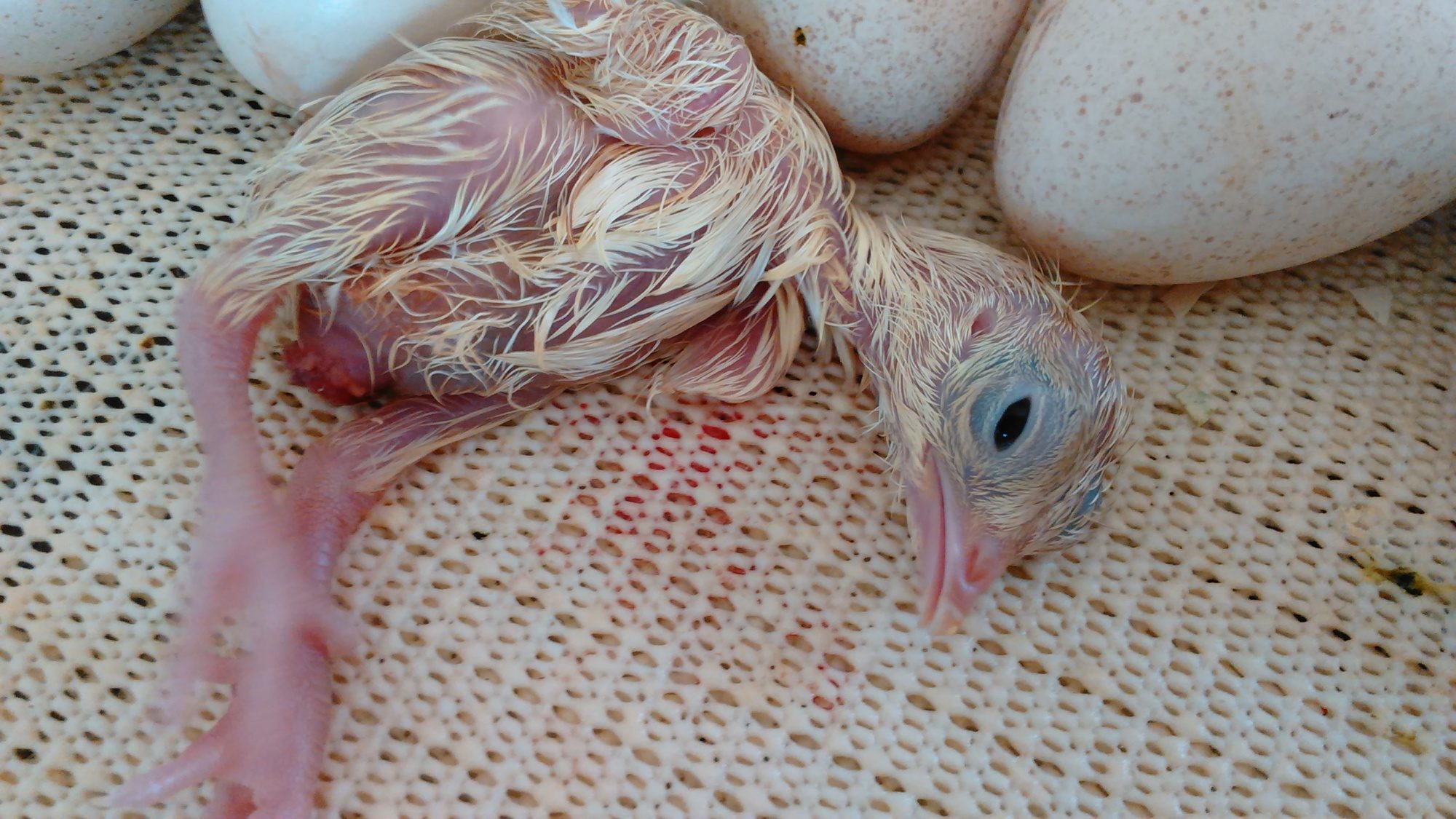 My little Moose when he hatched. He slept for two days straight, still had yolk and then an exposed belly button. It was a bloody hatch, as you can see. .