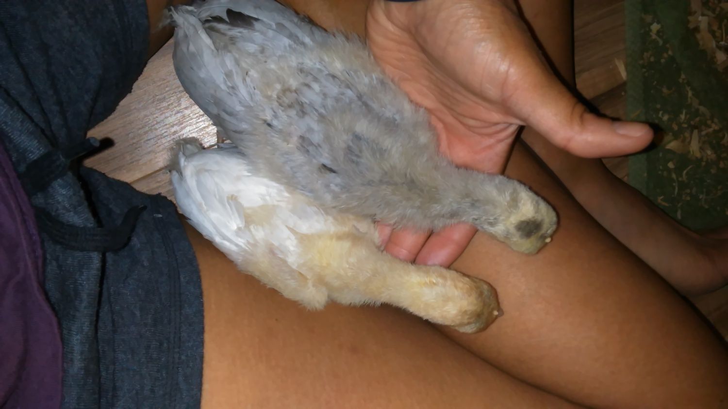 Either he is a runt or Trex (T.Rex) is big. They're the only two that hatched out of sixteen, so I can't tell. Trex was the only egg I had from my hen that was killed, while Moose comes from some shipped eggs. He is supposed to be Holland White but looks like a Midget to me lol.