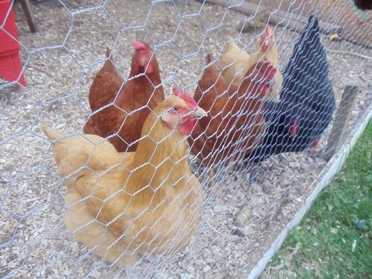 Healthy looking birds, Mike. Do you lock them in the coop at night? Here in Hunterdon Co. the coyotes would shred that chicken wire in a heartbeat.