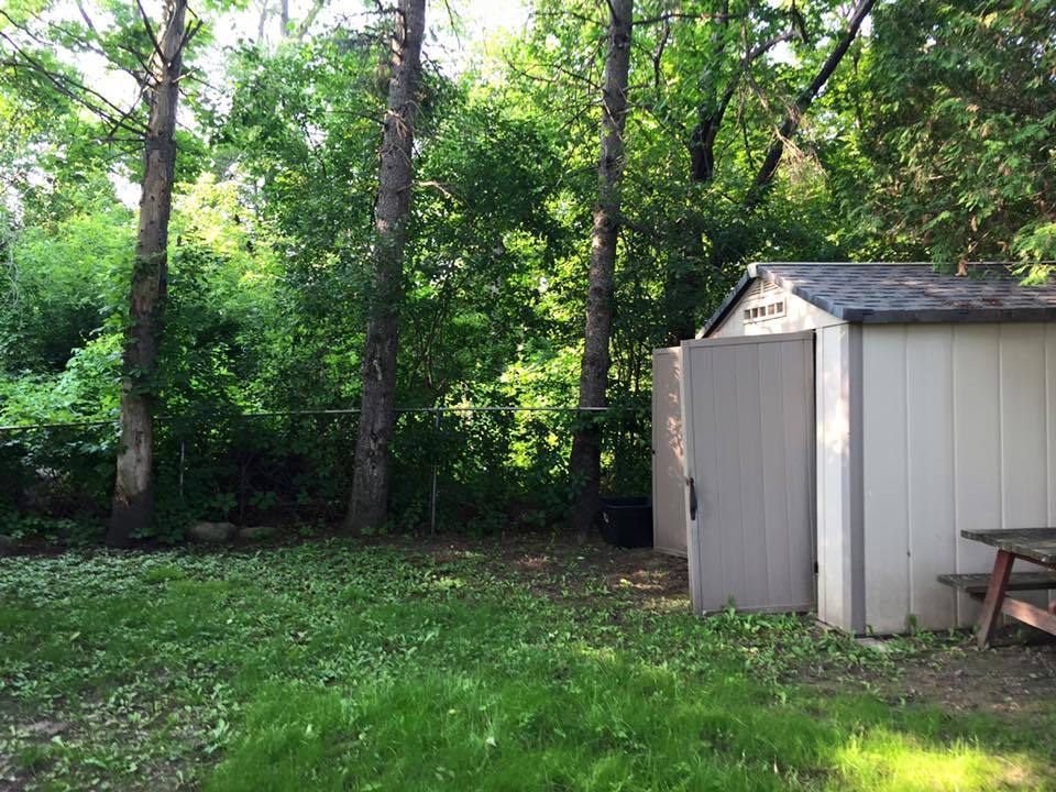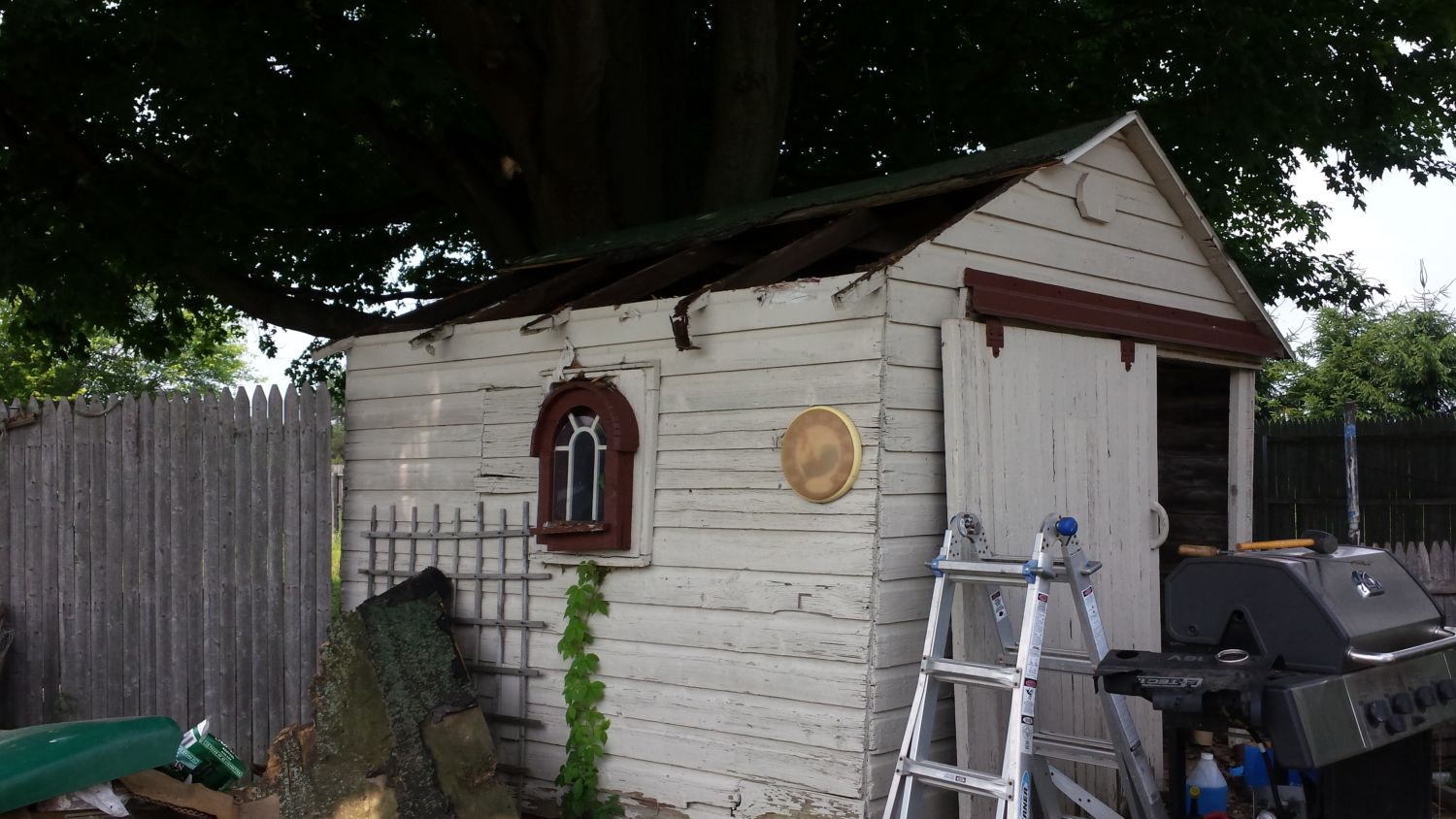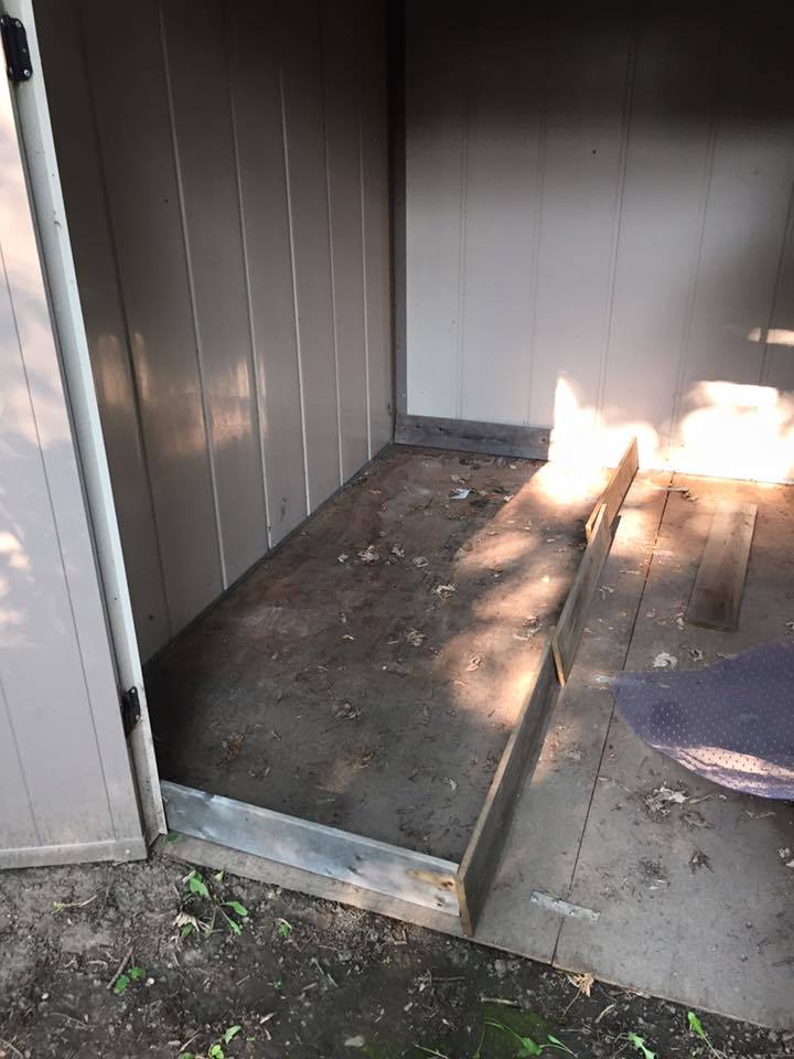 In our backyard, we have this pretty much unused plastic utility shed. We dismounted one of the doors to remove a root underneath it, hence why its a bit wonky in the pic: