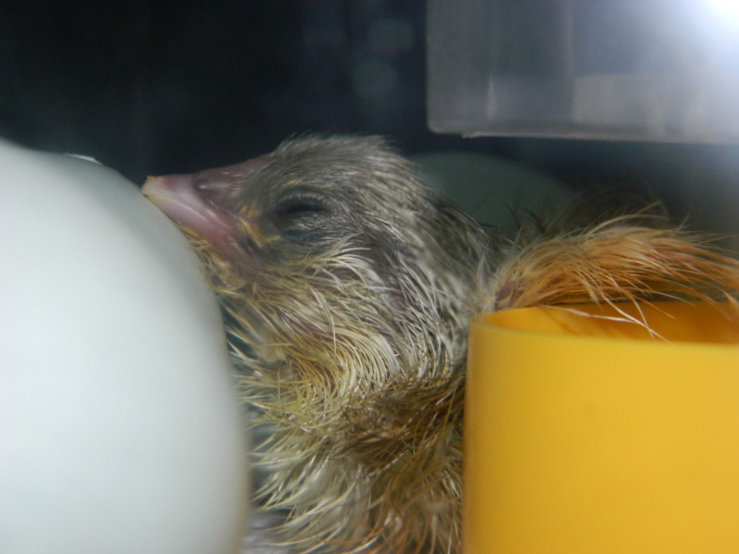 And BABY! Quick hatch- took about two hours to zip and push out- then climb over all her siblings-to-be! I have two more pips, as well!