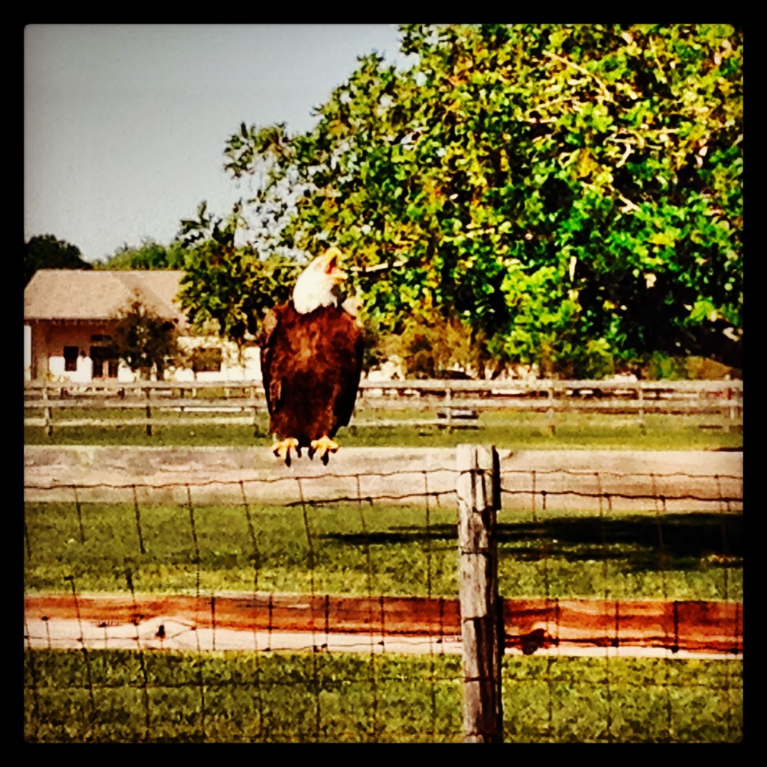 And lastly, I have some chickens that are in a covered run for most of the day, while there are at least a dozen running free with two roosters. I have been lucky with the predation so far. I have good coverage for those that do free range all day. But, she was sitting on a fence in my 'hood last weekend with her mate, dining on a dead armadillo. Good thing they haven't seen my chickens yet! Beautiful birds though! There was a seemingly small by comparison, red shouldered hawk swooping at them, during the photo op, which is why her mouth is open!