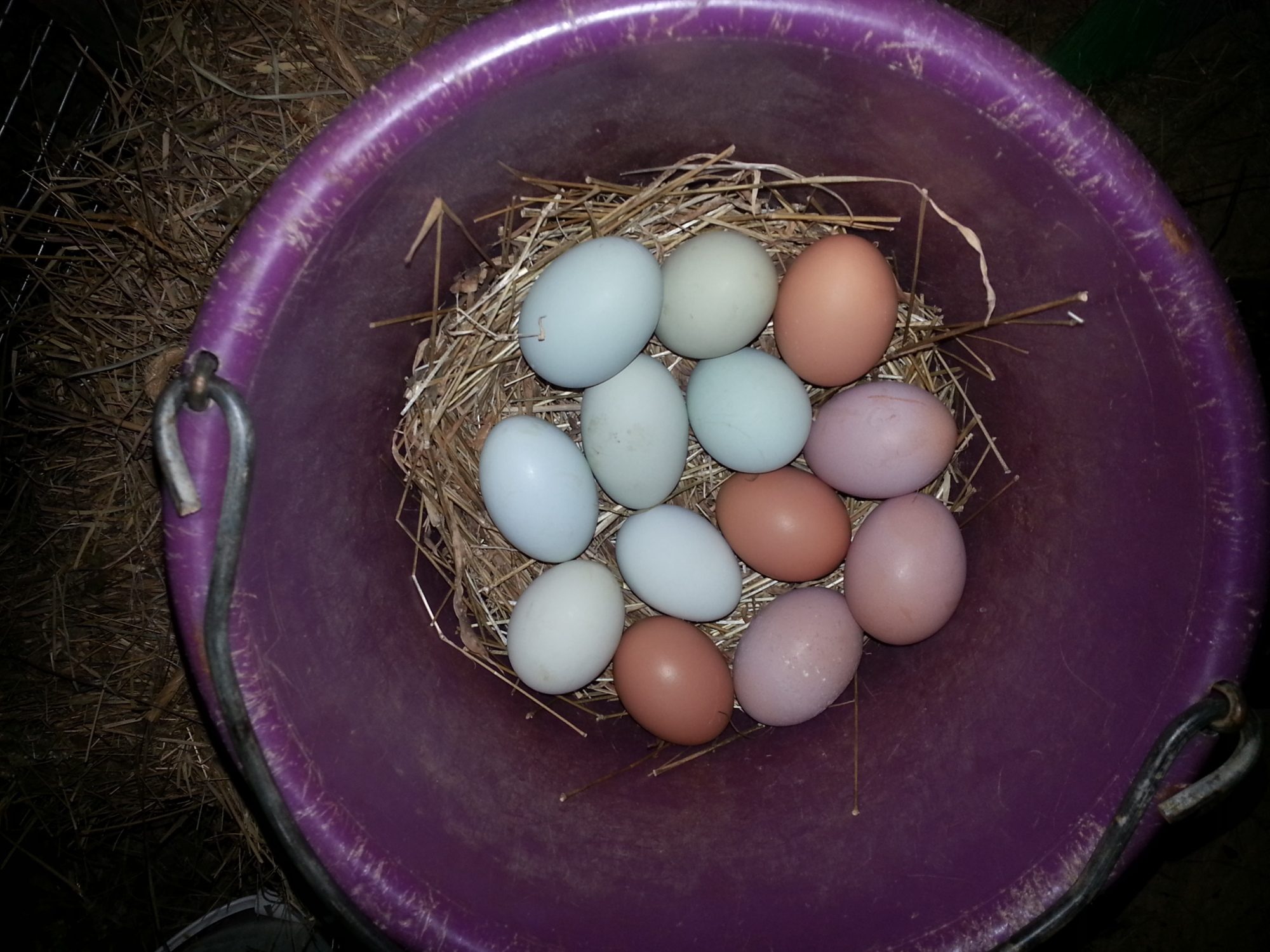 Oh yeah, I am up to about 21 eggs (out of 30 layers) a day. Don't know where the other slackers are laying or if they are laying. It is like an easter egg hunt here, daily.