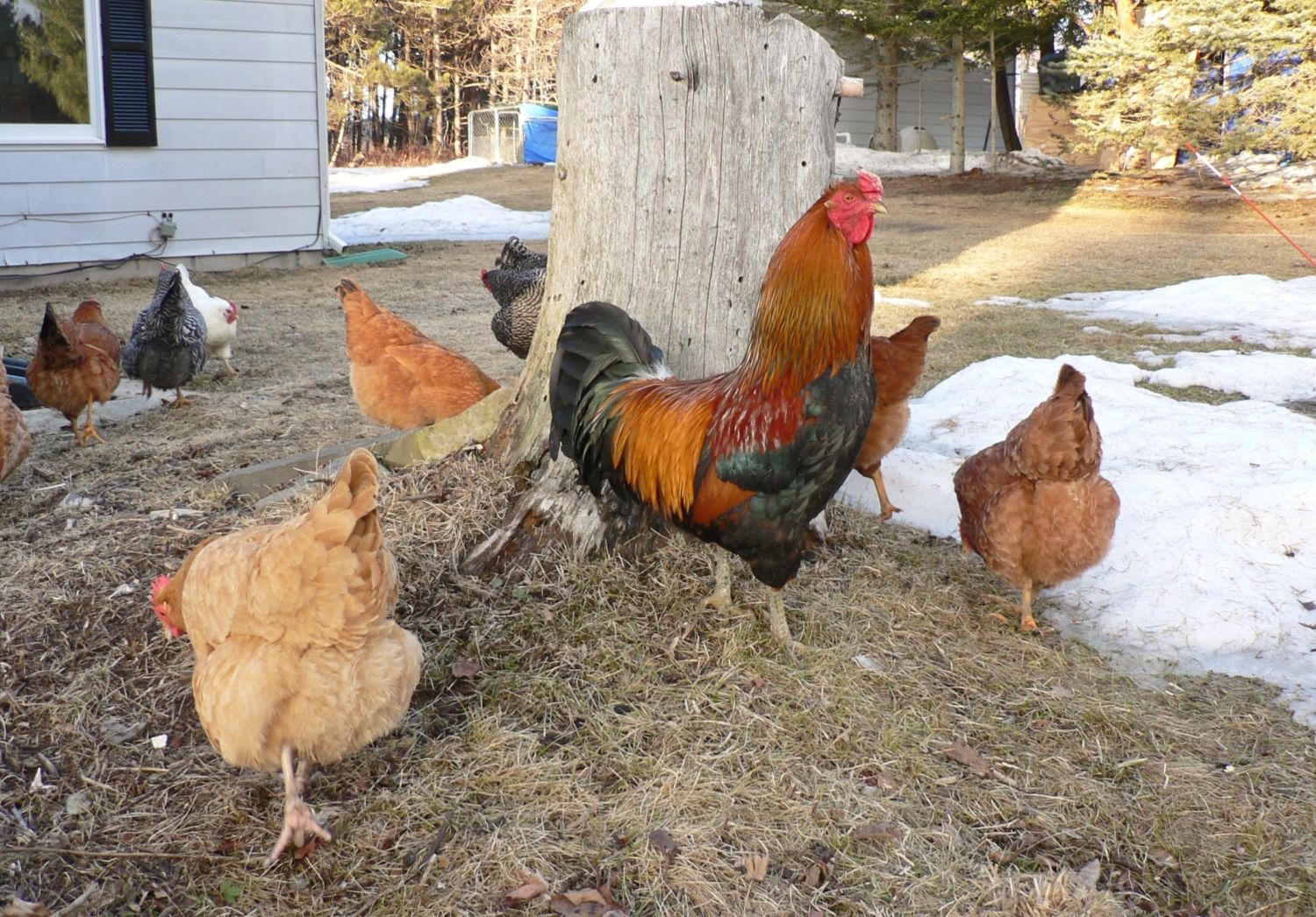 I am concerned that by grabbing the rooster every night, I am going to make him mean, and I am afraid to close up the grow out coop when they free range because she will pick some bizarre place to roost for the night and I won't find her before the dogs do. If I just leave them all in the big girl coop and run, will the older hens get bored and start whaling on George? For three nights, now, I have crept out at night and abducted the NYD chicks and put them on the roost in the big girl coop.