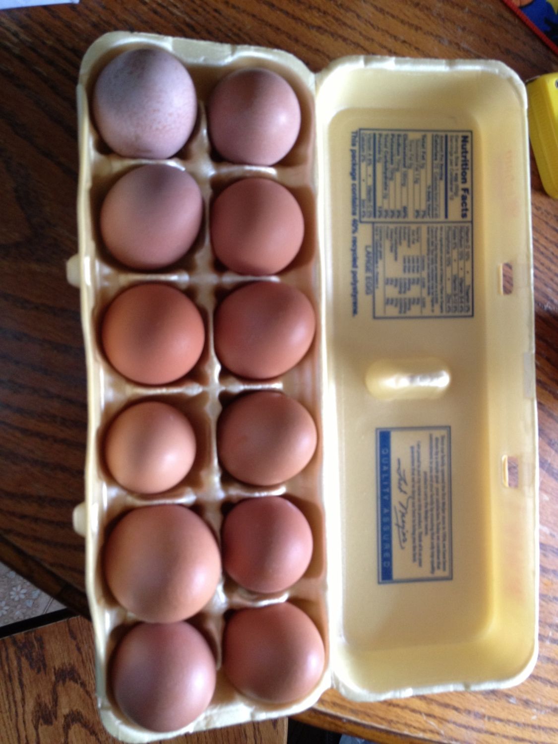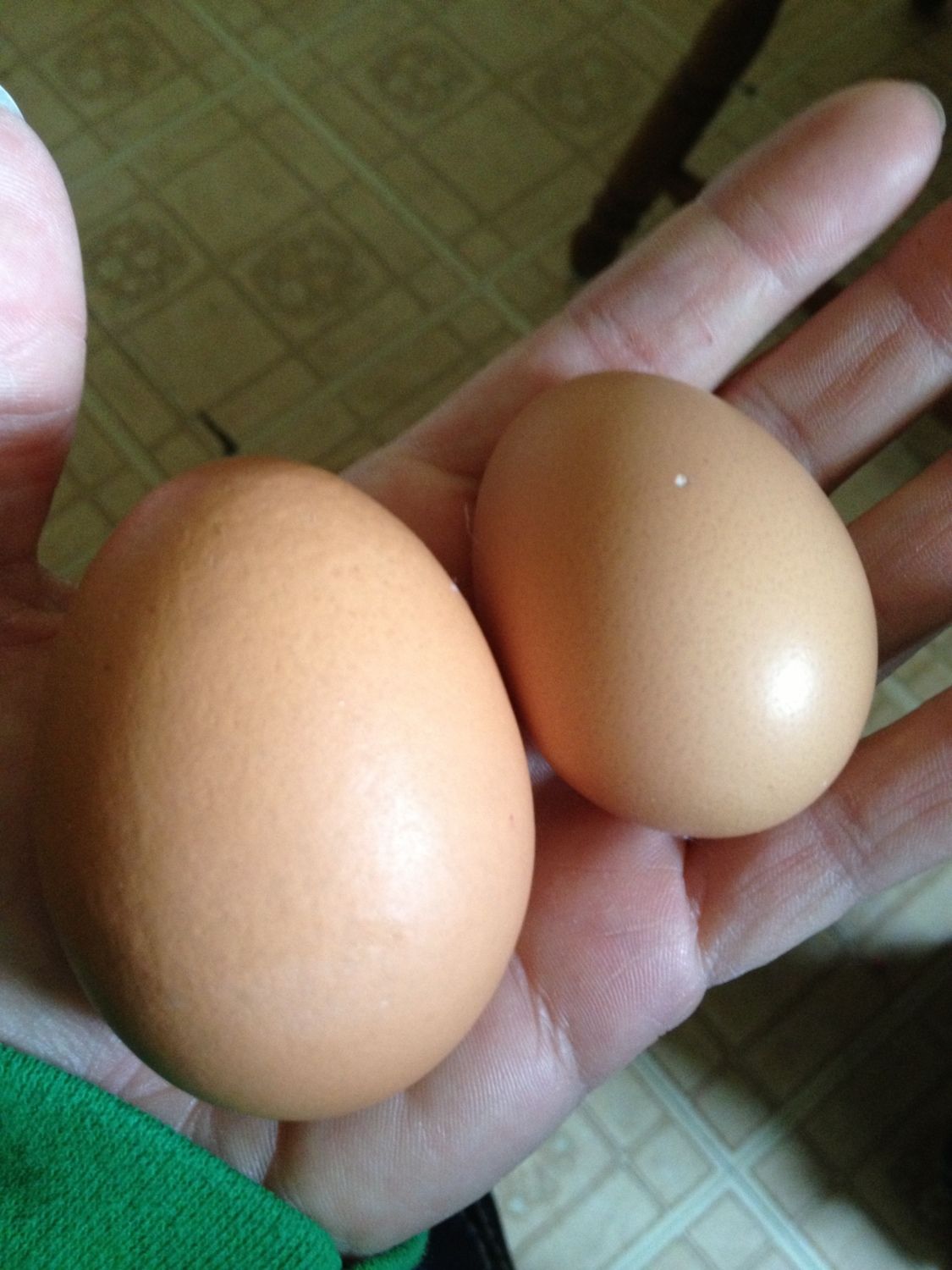 The last of My ISAs (4 in all) layed her first egg today! 1st one has been laying for 17 days with one egg every single day. 2nd has layed an egg each day for the last 3. 3rd had 1st yesterday and second today. And them today my little Nugget. I would never have dreamed she was ready. Shes just a tiny thing and she layed me the cutest little egg today! heres her first little one with My Dumpling's biggest one so far and a pic of the dozen I have gotten between them this week! Now to get my 3 RIRs laying I will be all set!