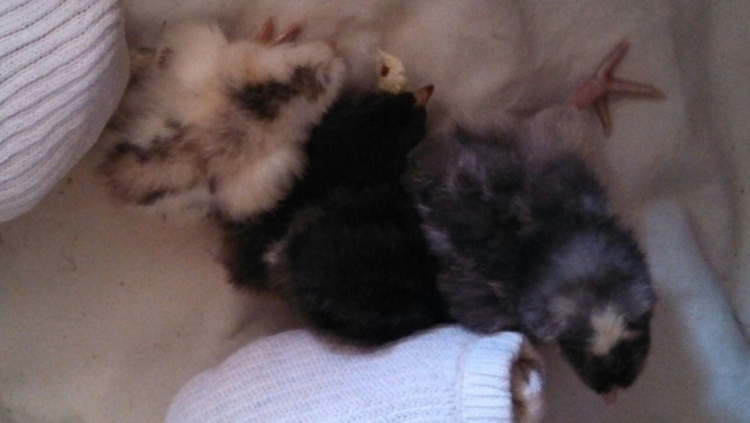 Gilgamesh is the dark grey chick with the white headspot. The others are variations on Easter Eggers (mom was an olive egger, Dad was fast and pretty) The rolled up socks are because I use a contact brooder heater thing and I like them to have something to cuddle up to.