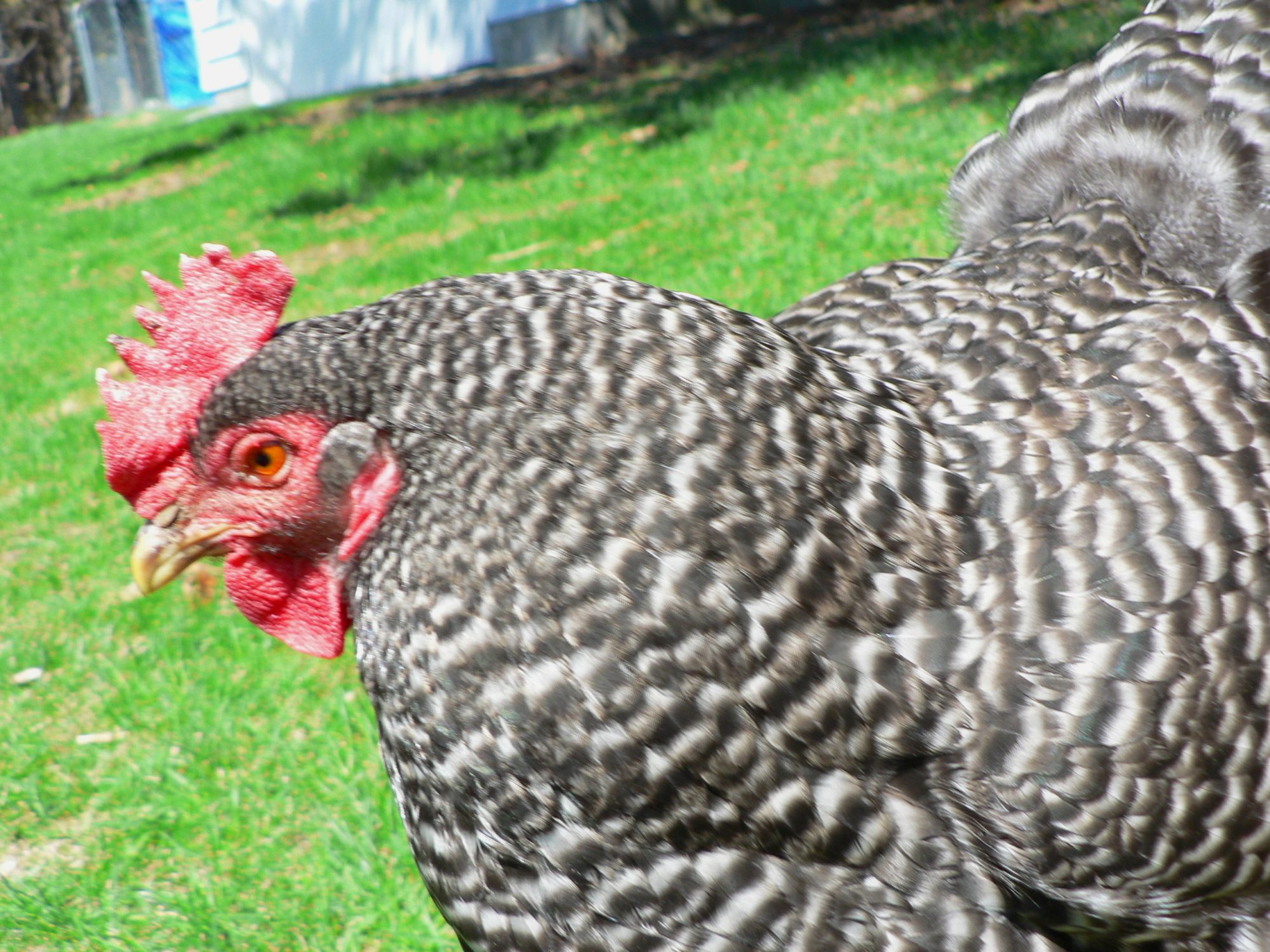 not the best pic of Fannie aka Bakery... but it's the only one I got of just her today, she laid 2 days in a ROW! she returned to the pen during free range, I let her in and shut the door to keep the boys out. when she sang, knowing the nest was empty... if she laid, it would be obvious... and she did... anyway, the boys were all hanging out at the doorway so I carried her out to avoid the chase. I would have loved to get a selfie, but she is so huge and heavy... I couldn't manage to hold her and manipulate the camera... she was very comfy and let me carry her over to where her flock was hanging out.