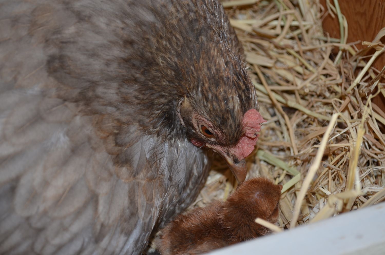 Coffee enjoyed a dust bath and was off the nest for almost 30 mins! If it had been colder, the chick may not have survived Coffee's excursion. Strangely, the chick was not peeping at all, so I wondered if the hen was even aware it had arrived. She should not be leaving the nest for 2 days once eggs start hatching.