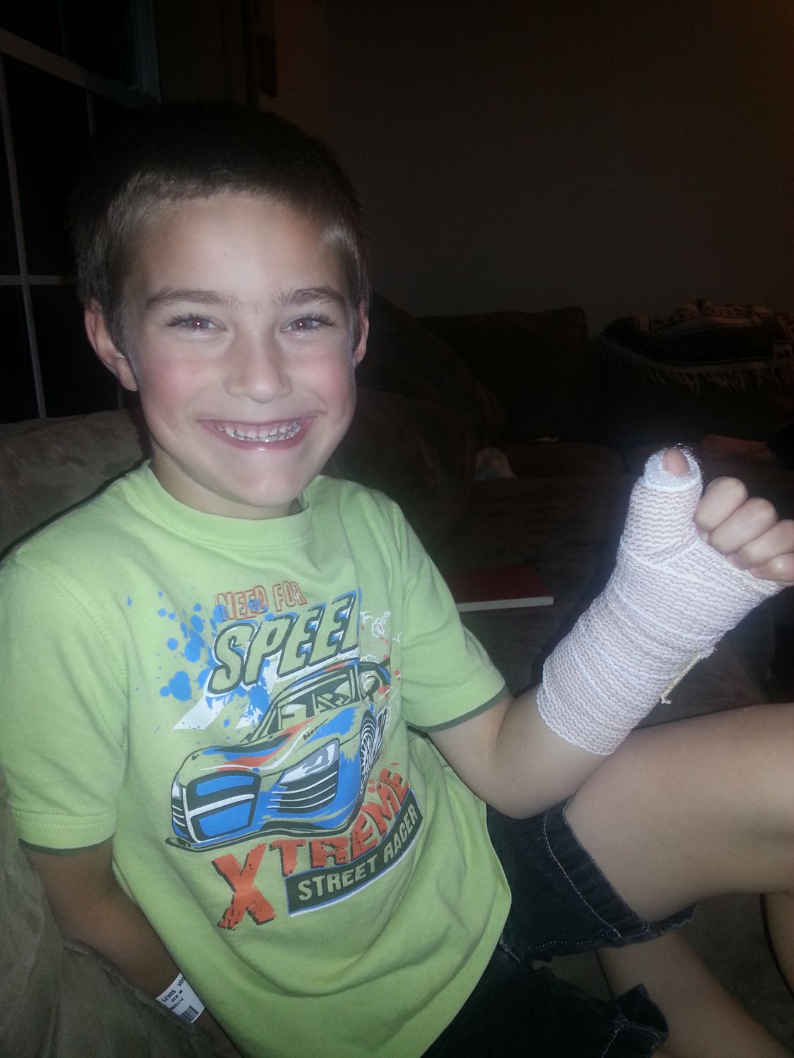 He thinks its cool that he's going to have a cast.... Lord help me!
