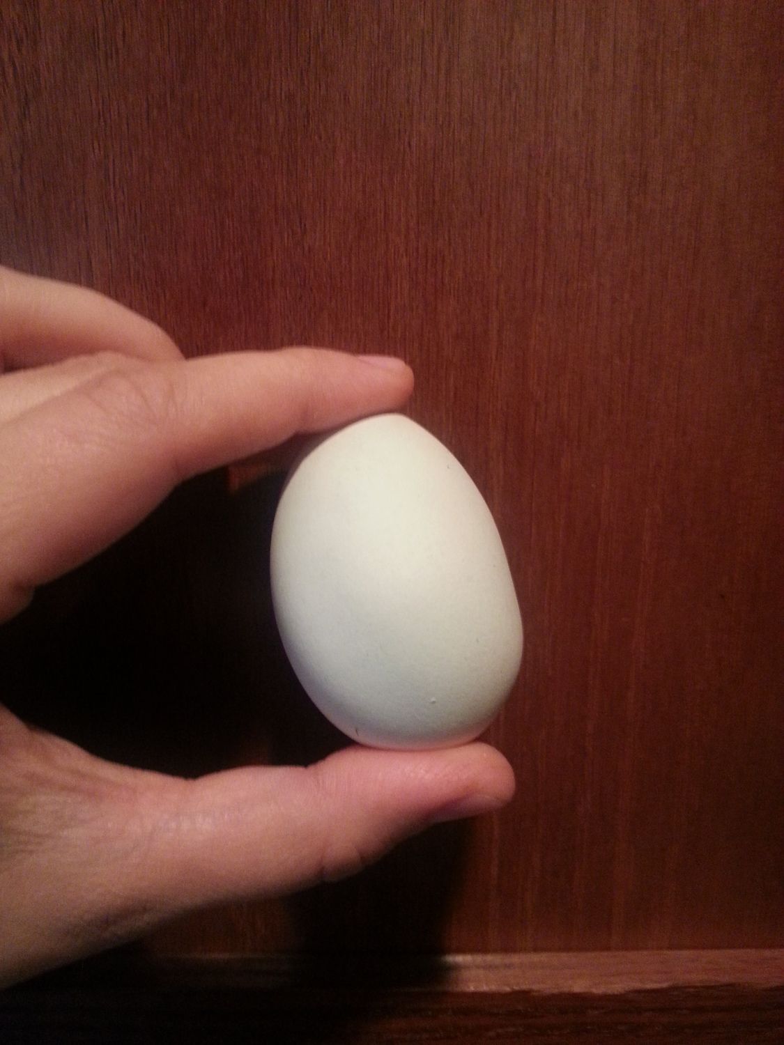 One of the EE's is laying a wonky egg, with flat sides.