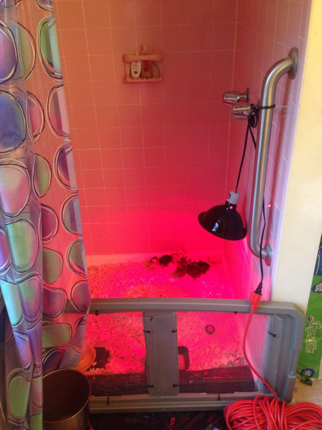 But we don't have a central heating system so the dust should be contained to the bathroom. Last time I brooded in the bathroom the cleanup was so much easier than the first time I when I brooded in the garage. I will NEVER do that again!!!