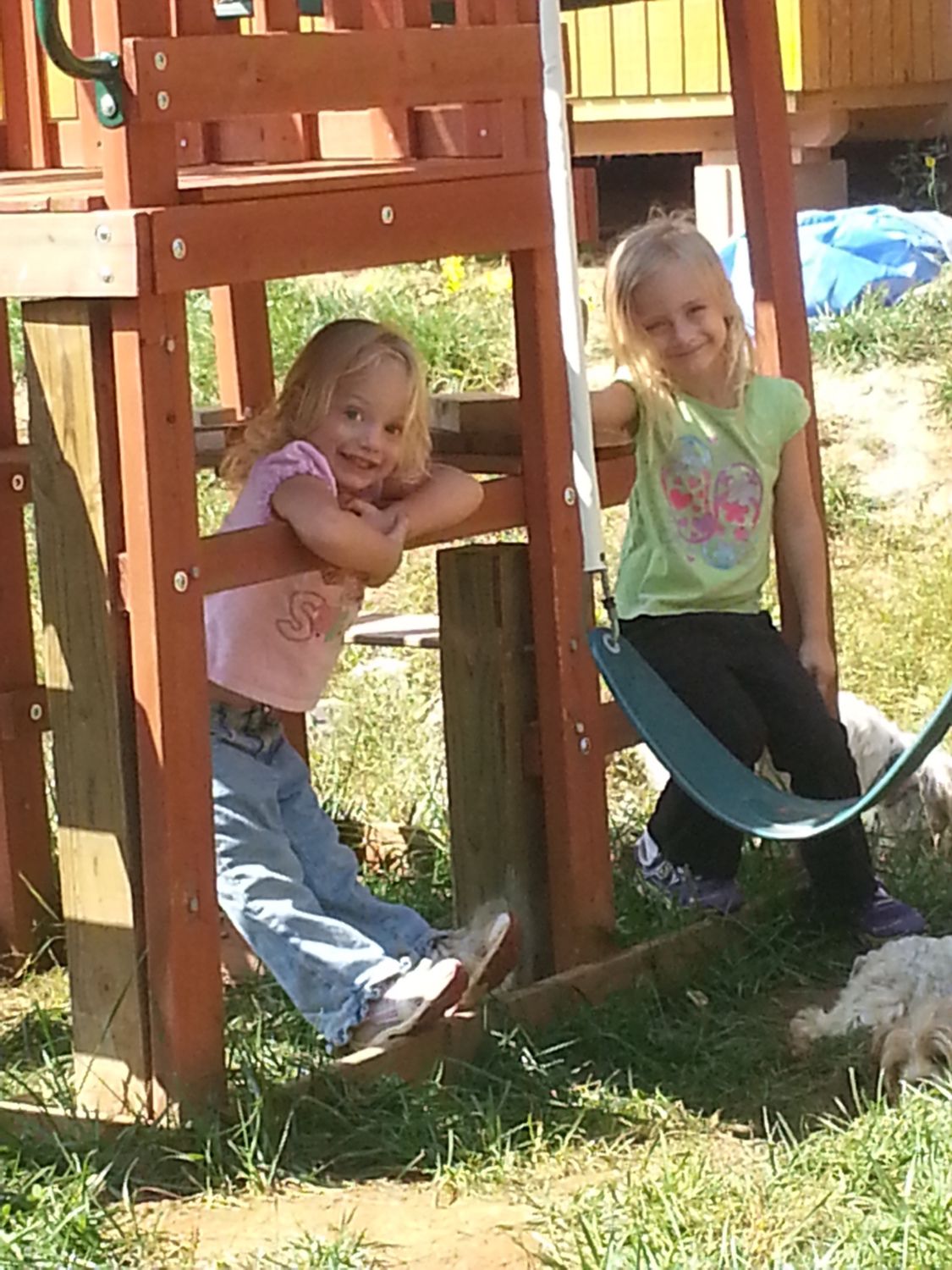 While I was gone hubby also fixed the floor of the well roof. The girls still lay up there and it was totally falling apart. He's so good.