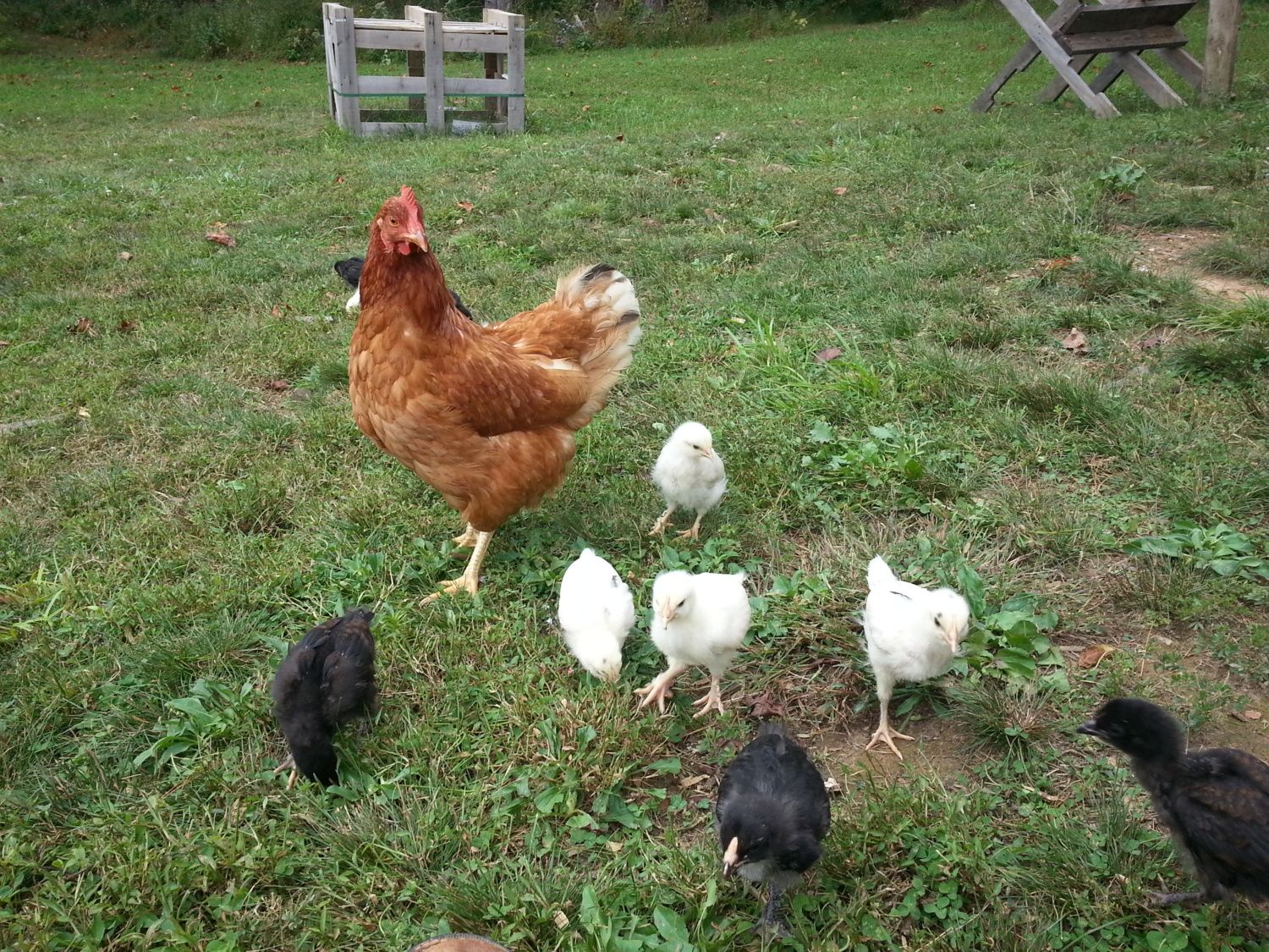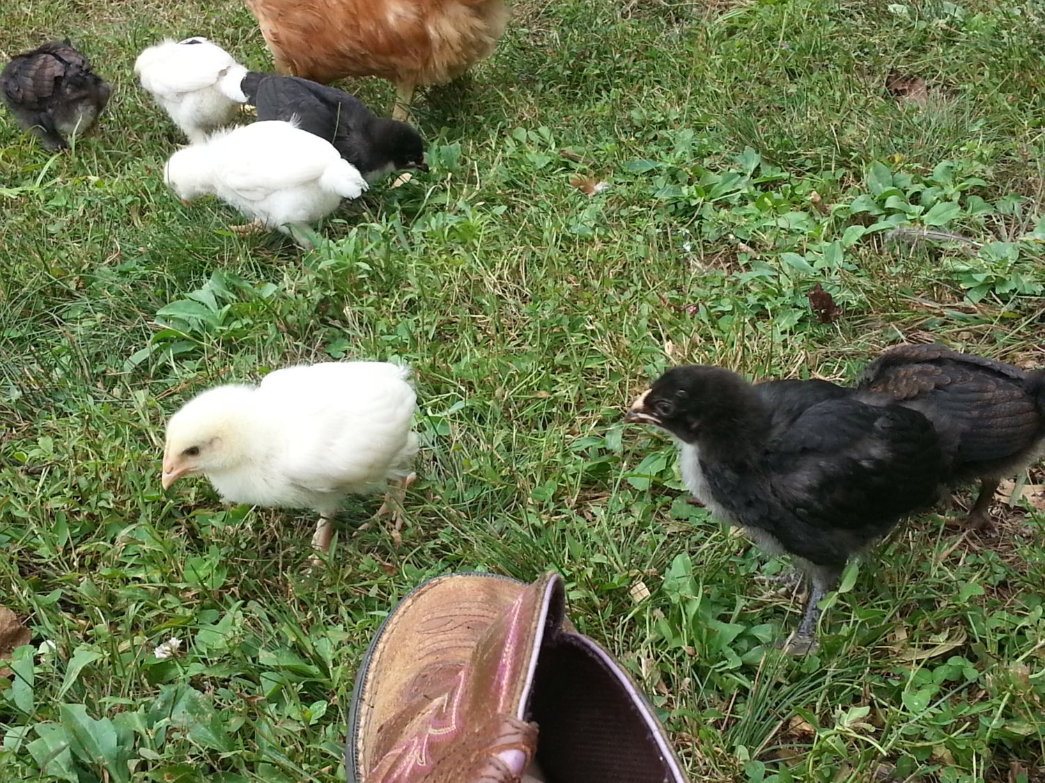 Well I was on a work trip since Monday and was so glad to get home today. Hubby took great care of the girls (and my one boy). He needs a name. He doesn't crow and he leaves everyone alone!! I think he's made it past his trial run.