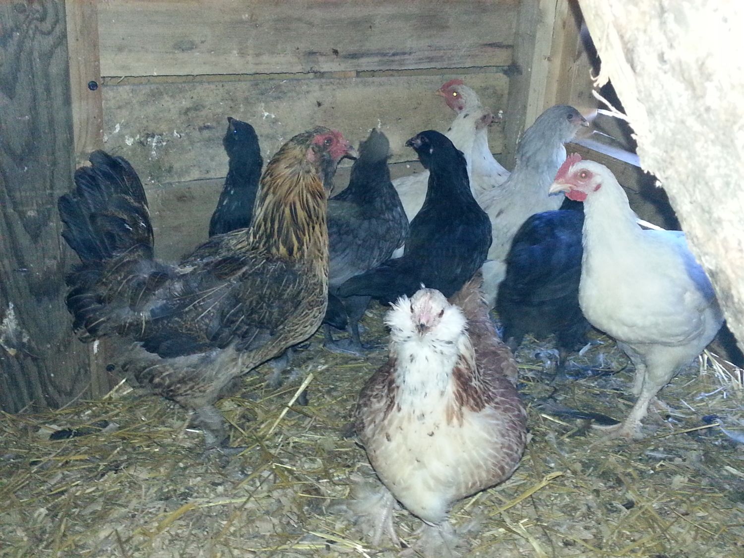 We also have 7 lorps, 2 roos and 5 pullets. These guys are only 4 weeks old. As well as an EE that we aren't sure on yet, -he/she is displayed as my picture currently!- most likely a roo since it was an extra in our order. Either way, the EE is named Ruffles. Only one of the lorps has a name so far, my oldest has named her Snow White.