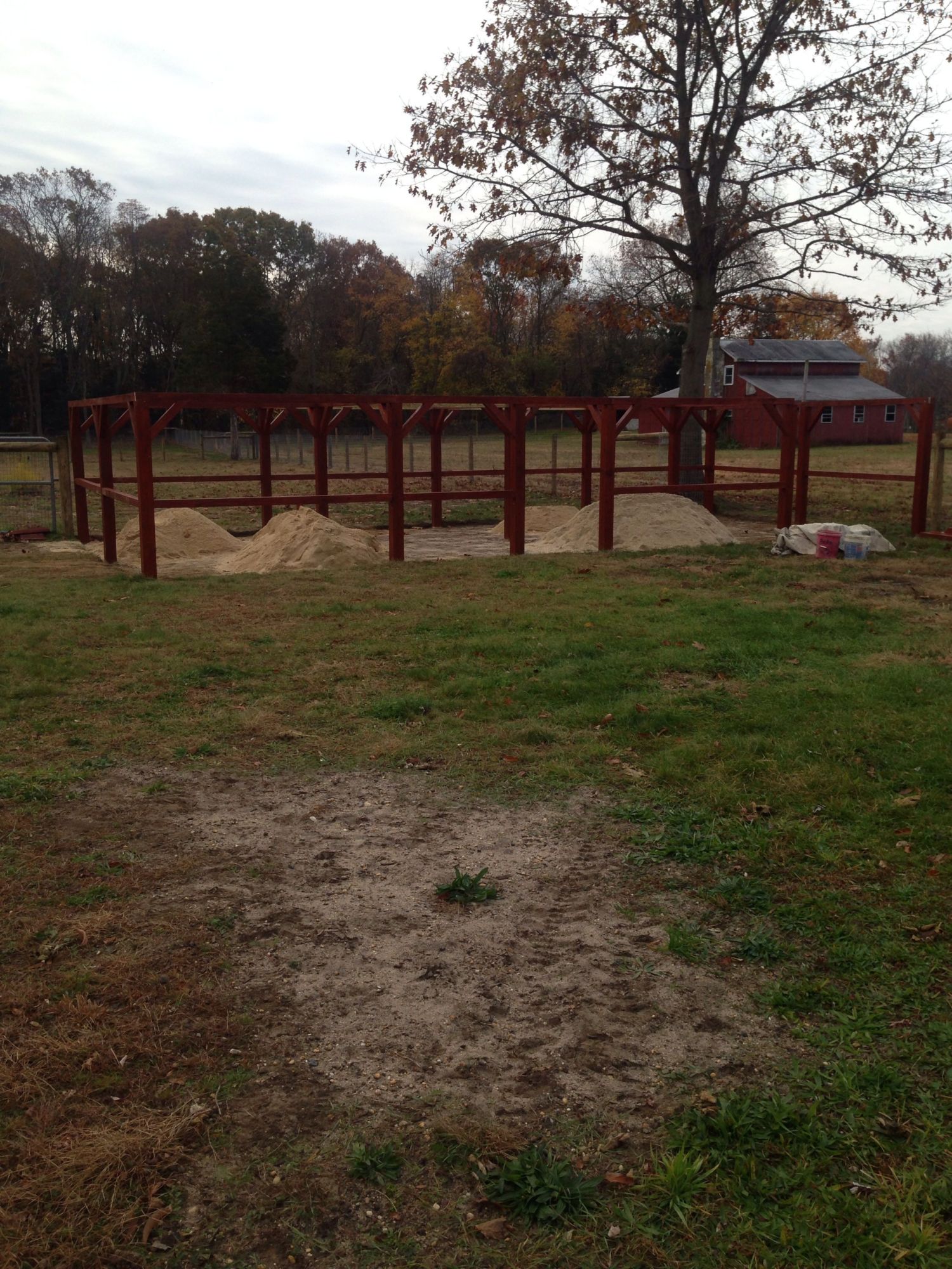 It is raining like heck here. The girls are huddled in the area of the pen that is covered. I am going to try and talk DH into extending the roof a bit. At least 3 more feet. That will give them another 30sq feet of dry pen area. We are also going to winterize the pen a bit. Since Rumples has to sleep in her own area, we are going to hang a heat lamp for her. It will be in a spot that can be shared by the others outside. The temps here are dropping down to around 14F at night.