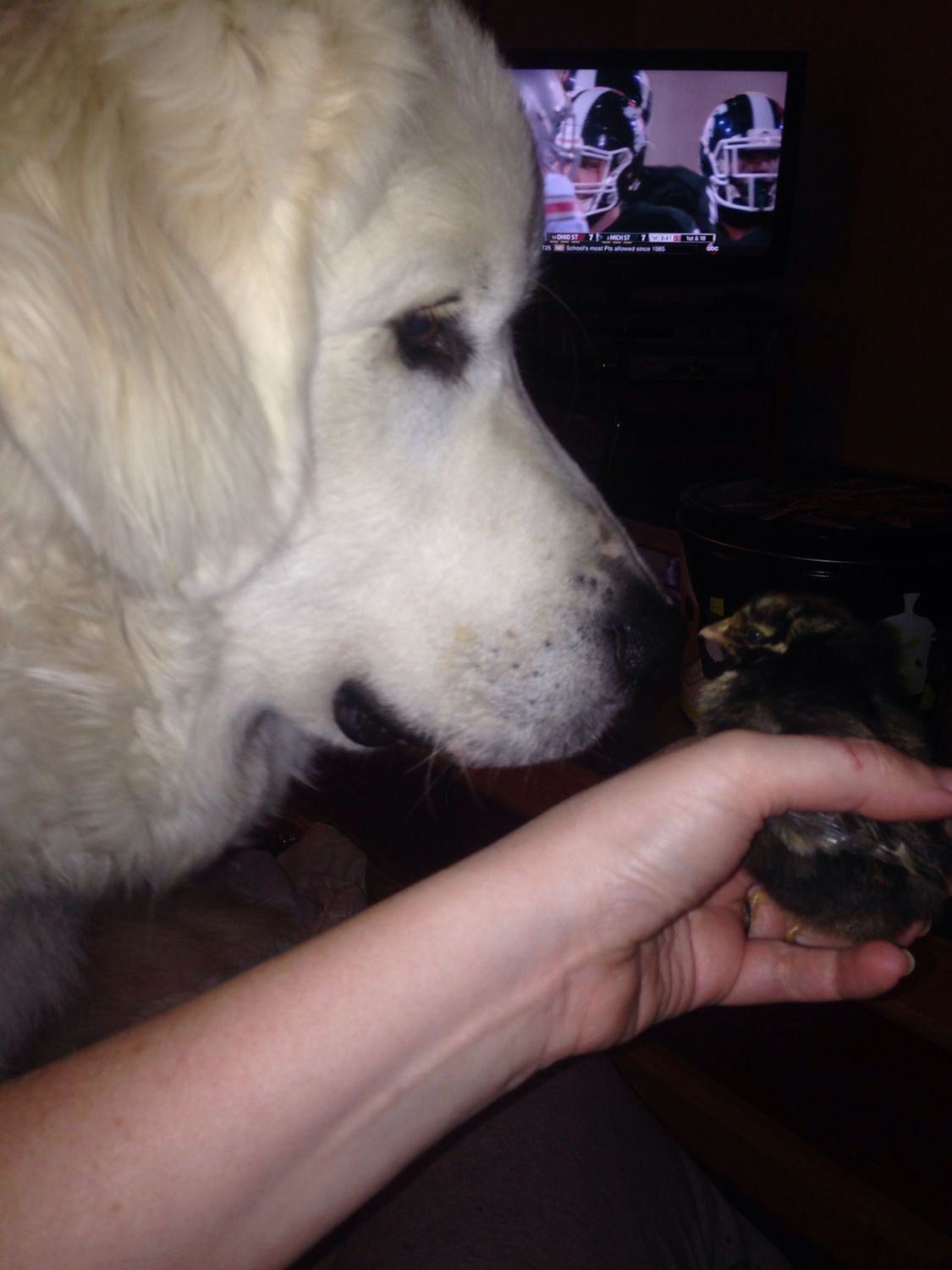 Also trying to teach Rawley that chickens are our friends!