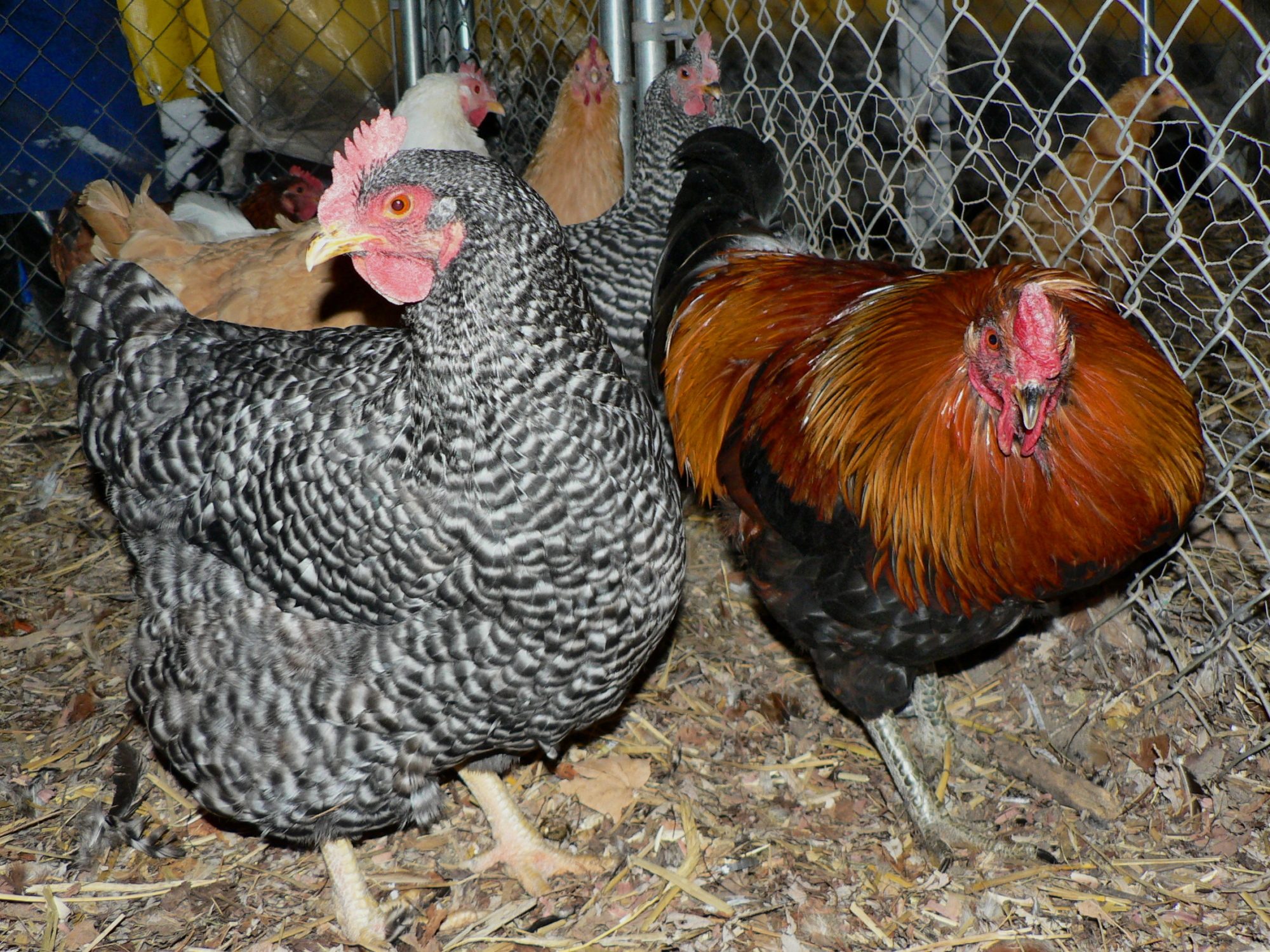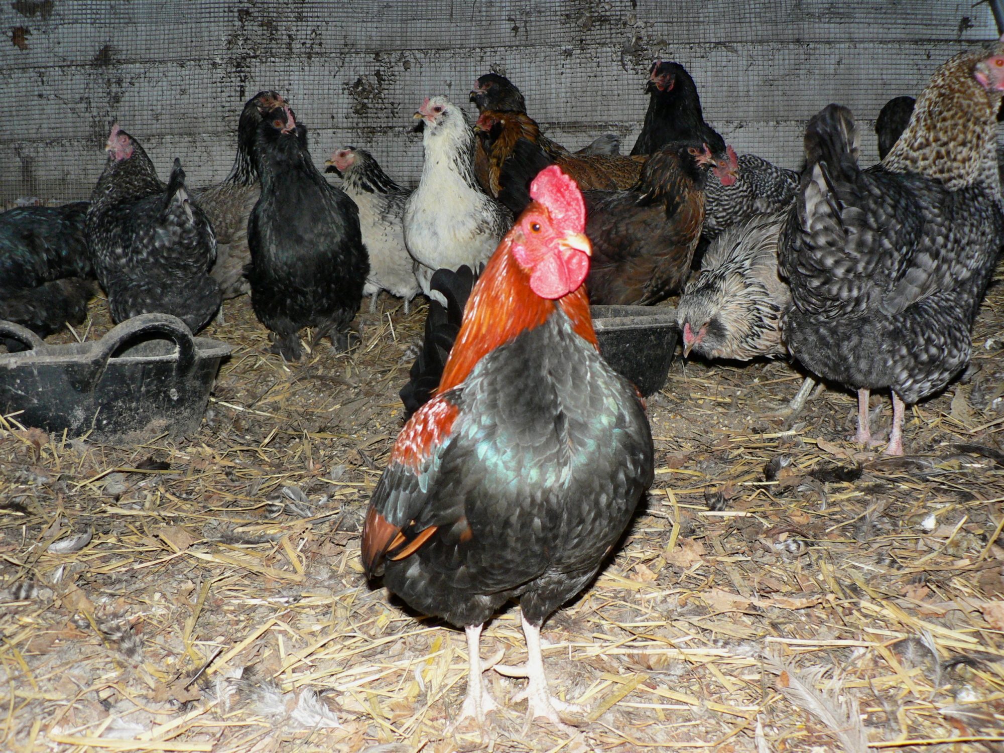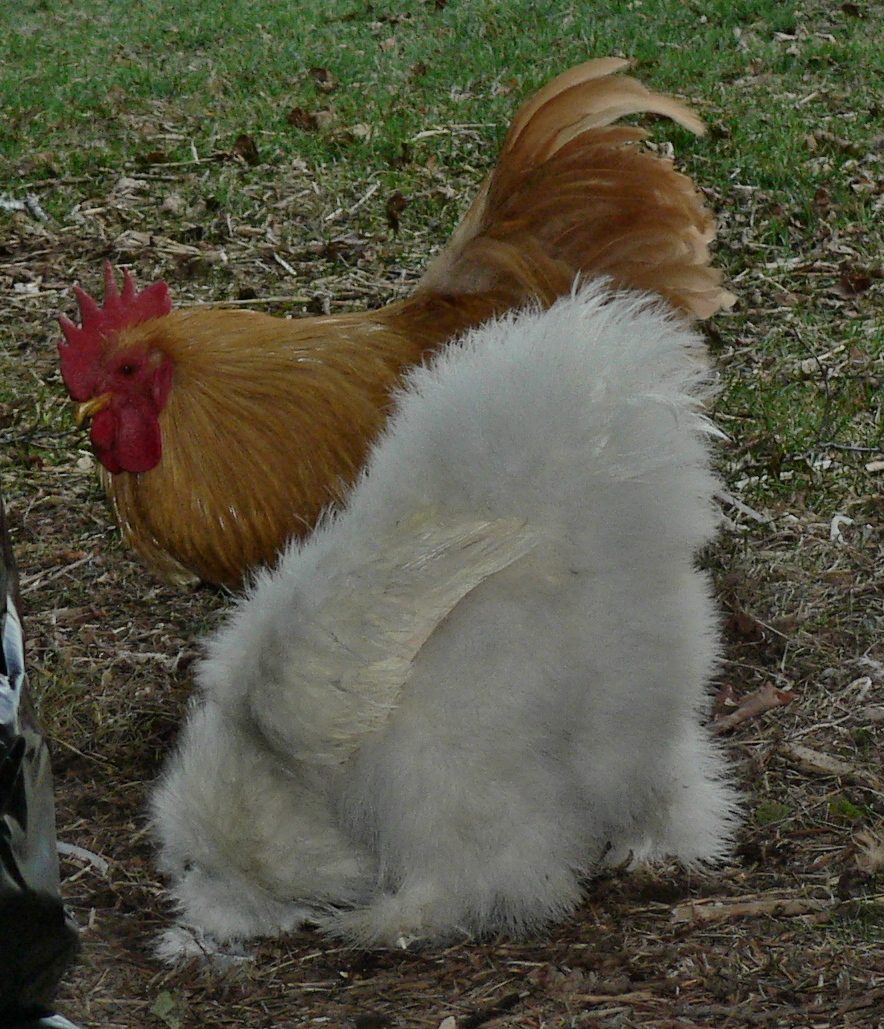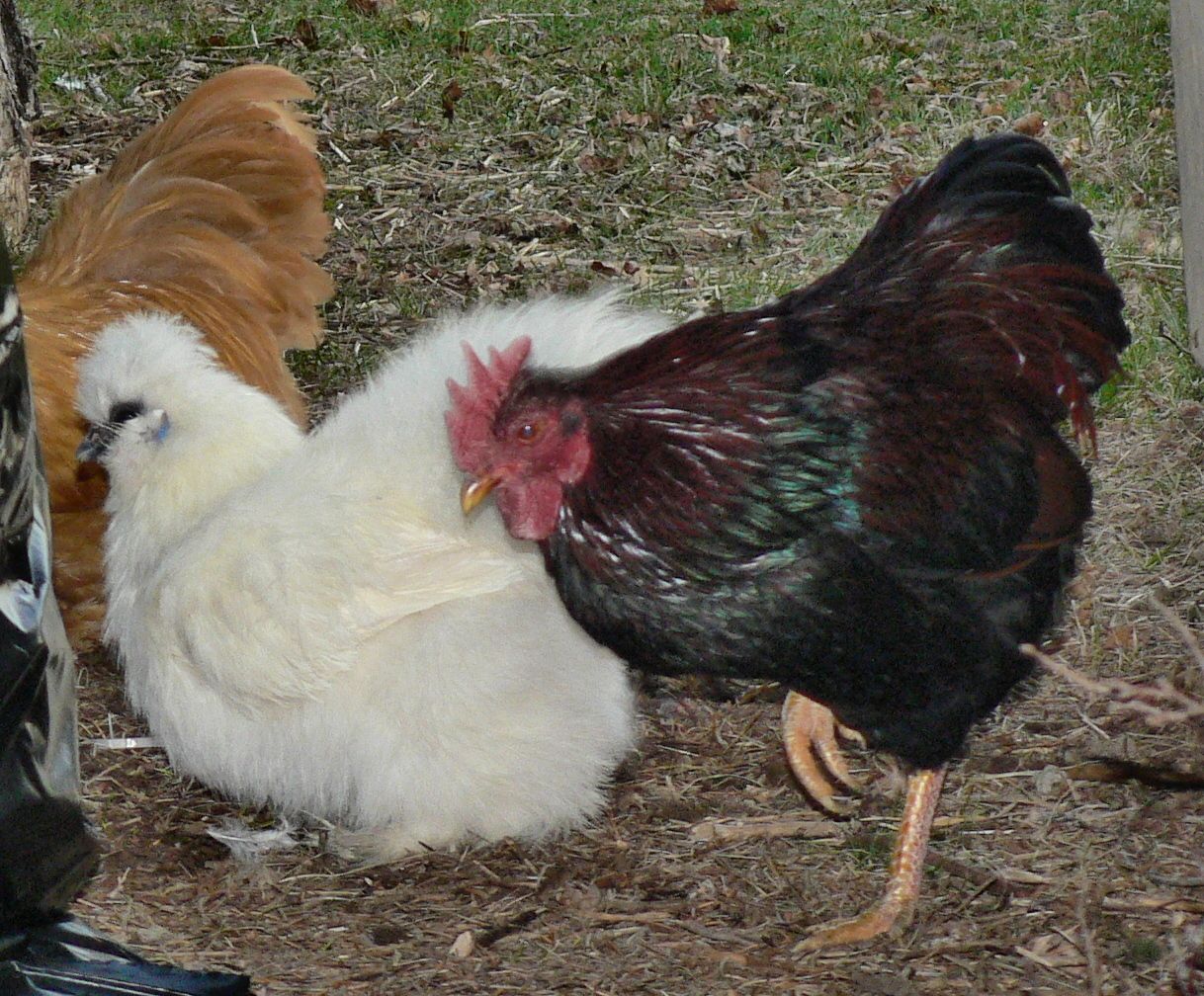 Henry and Red are best mates, and they both love Gossamer. Red has the honor of breeding with her, Henry, of protecting and foraging with... both the boys get along with all the chicks and keep the young boys in line. it's been working out well to let them move in.