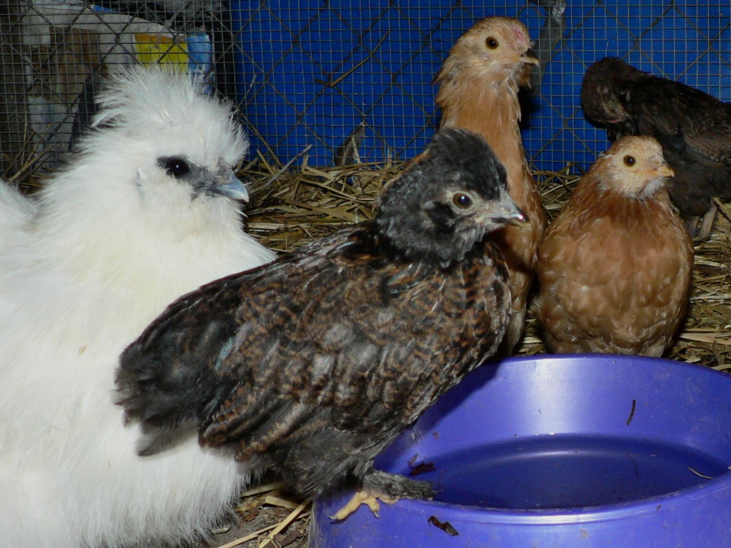the next section over now houses these 5 plus 1, the plus 1 is Baby, Big Broody Mama's only son. he roosts on the wall that separates the two chambers, he goes back and forth as he pleases. he's bigger than all these 5 so they give him free rein, and he's welcome in the other chamber bc of his Mama's position. Tommy let Max move in and they are all quite content