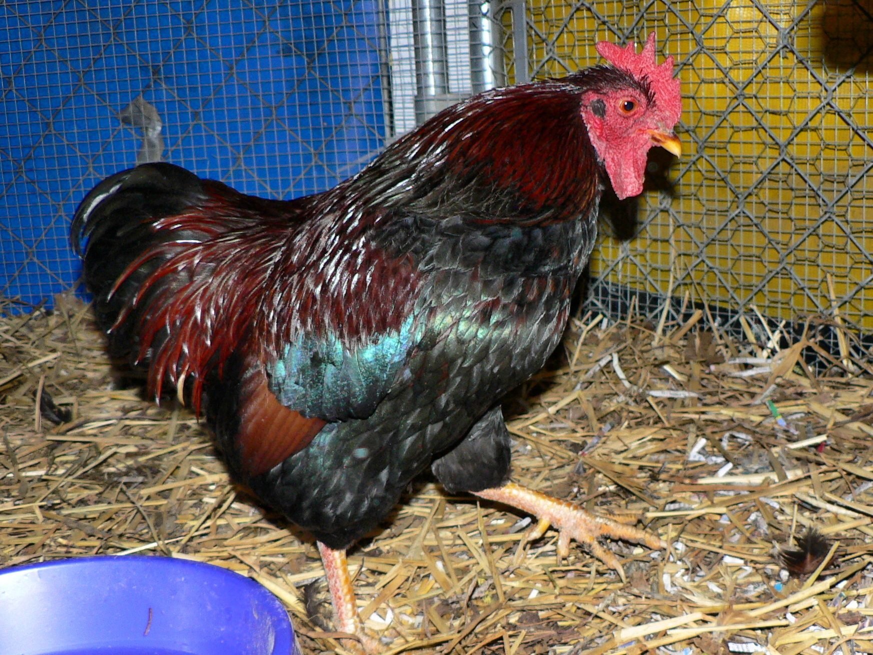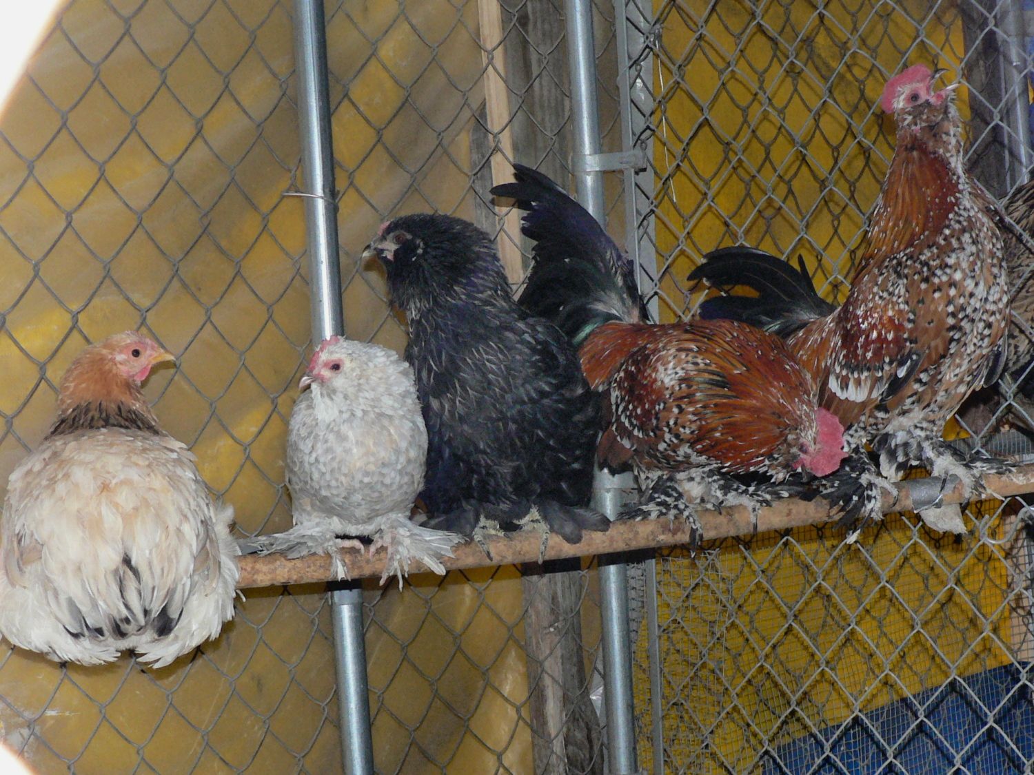 Glad you are feeling better, Cheeka. The snow picture is beautiful. All the chickens look great, so shiny. That last little rooster is probably afraid of getting a whooping from Brutus if he gets to close to you.