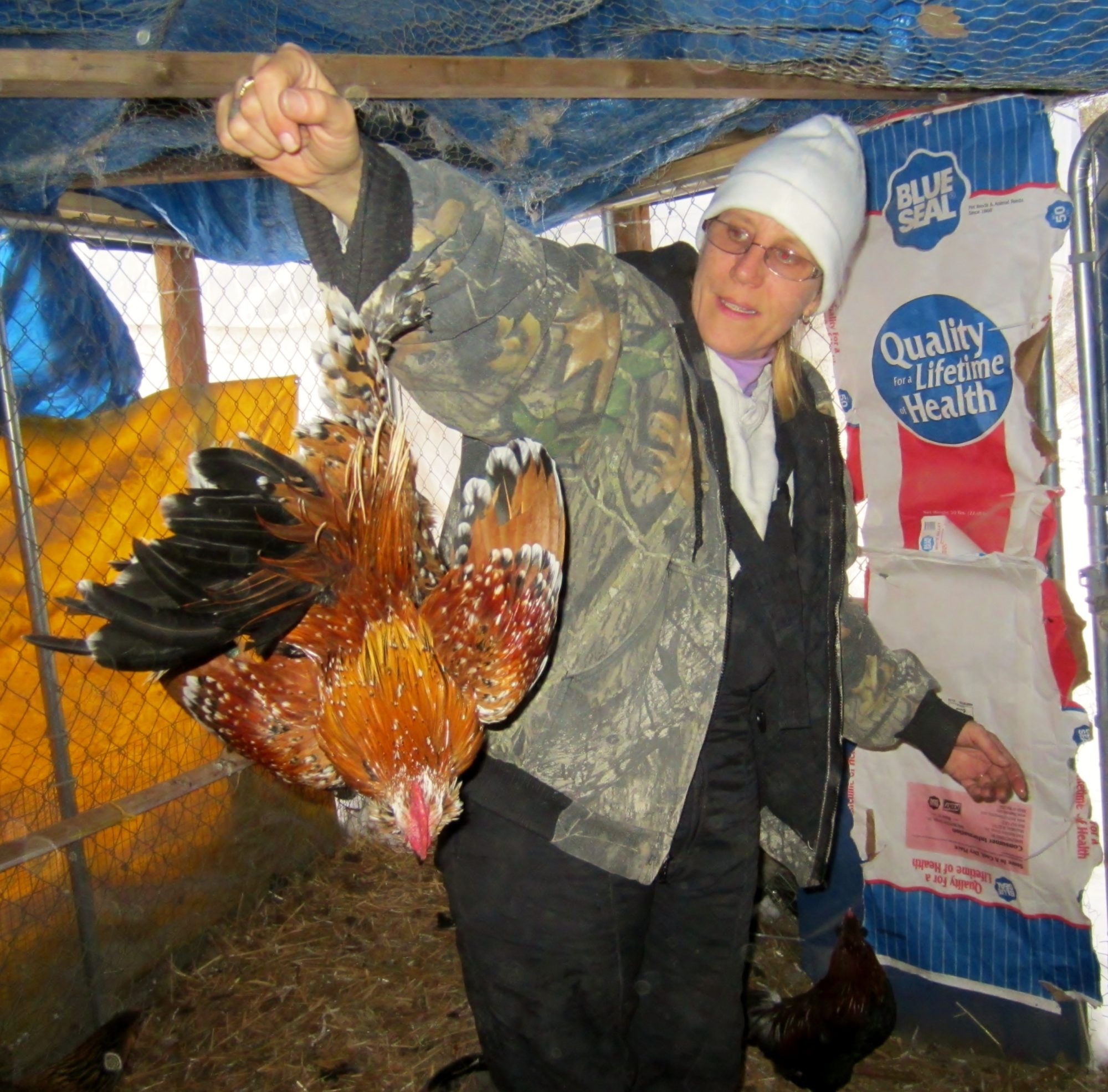 W4W, I do use some bag balm on the dry tips of comb points, or lower ridge of wattles, but only a smear, too much seems to backfire. I've tripled my efforts to block any possible drafts and snow still filters in... insidious stuff!! the flock has always been fine at 30-35 below, so I wasn't overly worried about 5 more (less??) degrees, and they were just dandy this morning. even the boys section. all were alive and well, and hanging close together to preserve heat. more corn in today's feed than usual, simply to help them stay warm. I was gone for 11 hours, so breakfast was it for me. it was pitch black out at 7 when I finally got home. so much for feeling better too... I'm whooped and seem to have bronchitis. bummer. 35 days til my schedule eases up. then it will be Spring. but I do have Monday off and if Gossy's chicks hatch on time, it will be a most fun day of playing with fuzzy butts!!