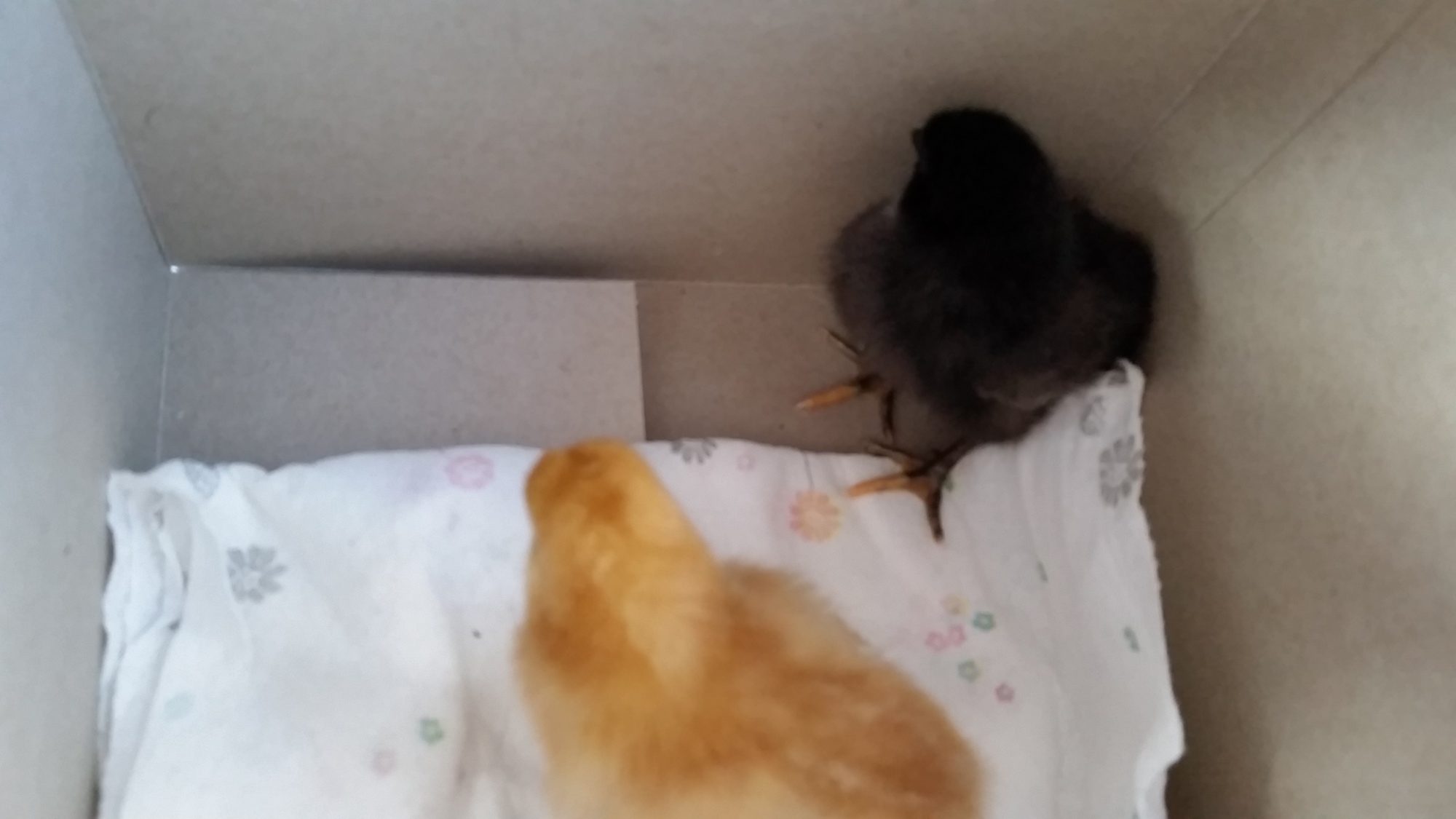 Ahhhhh! So cute. Since you didn't tell us, I'm going to guess. Buff Orpington and black sex link???