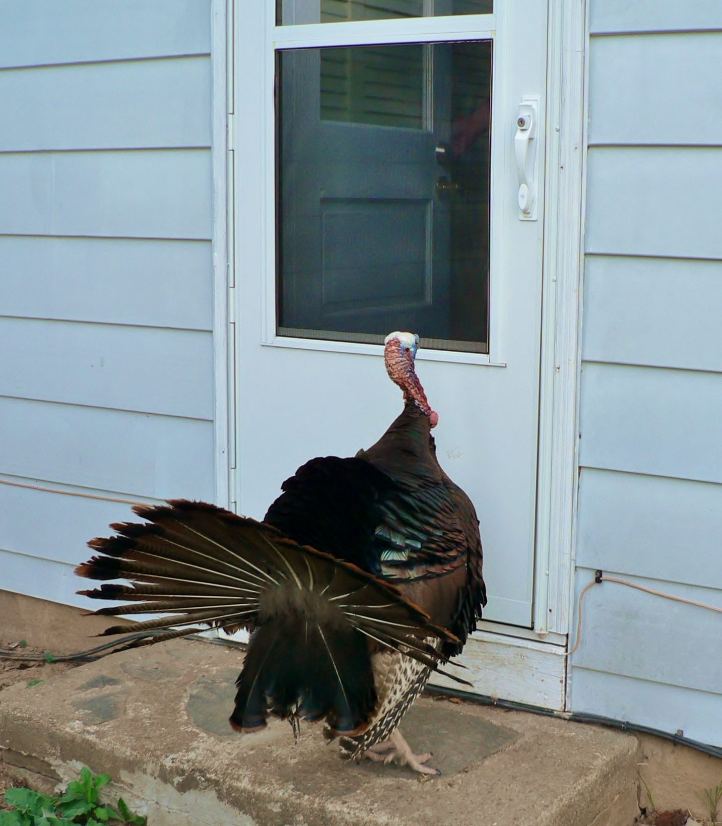 lol! I know, should be captioned with "he's moving in..." but what really happened was even funnier. My cousin Bobby was sitting on the step and the Tom approached him, his behavior was suddenly different and I said something along the line of "watch out" and bam! Bobby got flogged. not a bad one, but enough to make him jump up and attempt to lash back. but I wouldn't let him. I made him go inside right away. told him I would handle it. so the Tom is watching him through the door. every time Bobby reappeared, the Tom went after him (I was laughing my head off! neither of the "he's" were amused...)