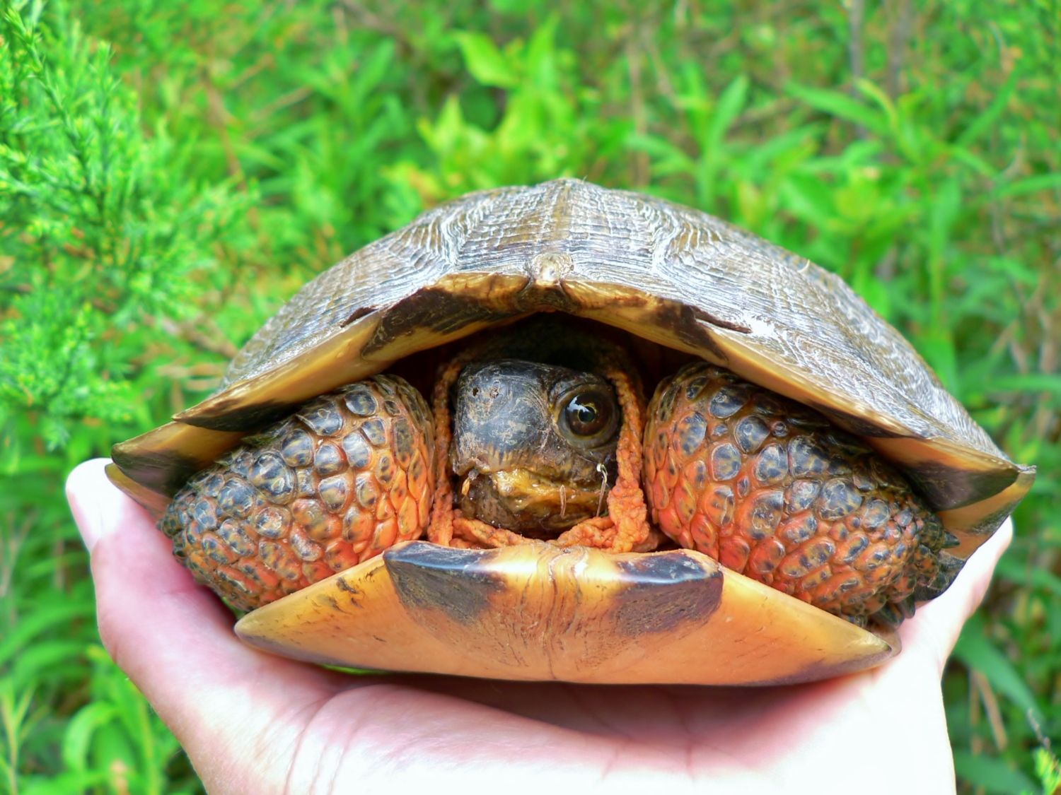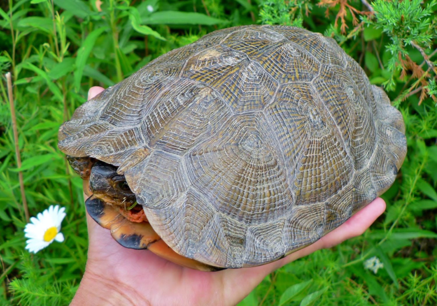 I could see the scenery reflected in the turtles eye, so I got a macro shot of her face - took a chance of being snapped at, but she didn't do a thing until I picked her up...