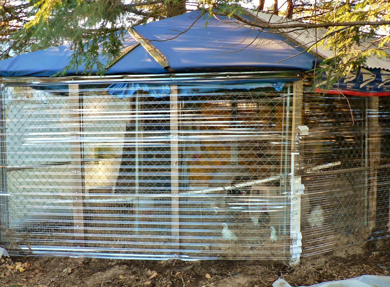 Fortunately, no rain today. Unfortunately, the wind blew my front door open (which is normal if it isn't shut right) and the run door. The flock came to me, but Sturgis chased them off. I got some in, some went out. Some in... All six are playing near the lilac bush. I don't think I'll get them in until later. I just hope Jazlyn isn't here yet. If they haven't gone in on their own (the wind keeps blowing the door shut when they try to go in on their own) she'll be in the way while I'm trying to guide them in. Oh well. I'm sure they will get in somehow.