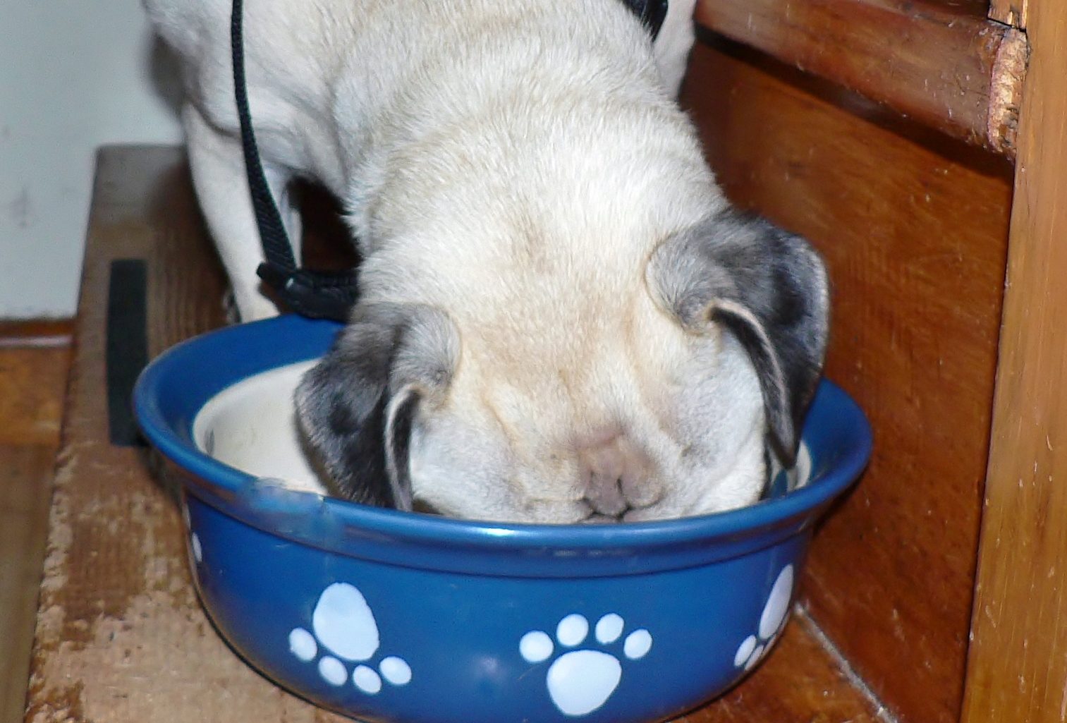 oh ya W4W, Chester prefers to eat a few inches up, but will snack from the floor... Peri knows better than to go anywhere near his bowl if his head is in it anyway, this morning, she ate from her own bowl at the same time that Belle and Chester ate, no goofing around, no waiting - that's my preference, but because she's so young, I'm sure her behavior will bounce over the next 2 years... puppyhood is a long long long time... but I do know that when Chester is finished, he's finished... even if there are a few kibbles left, he doesn't care who licks it. even the cats. which answers the other question. I have 2 male cats. Oliver and Hershey. Oliver has been hanging out in the workroom for weeks. he has his litter in there, it's cooler (he's a long hair) and he prefers the company of the little chick and her even littler babies... they don't mind him one bit. Hershey is a spaz, but he's come around already, suspicious of the pup, he tends to hide and watch... the cats are 12 and 9.5 respectively... they know pugs.