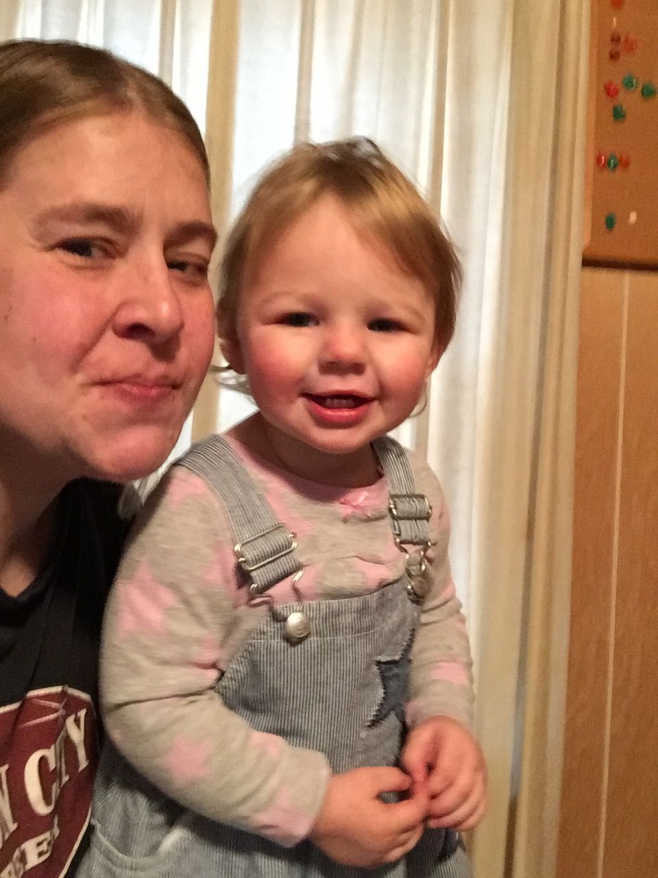 Friday (I really should put it on you tube) I taught her, "uh oh". For some reason though, she says, "uh uh oh!" I told her mother about the two new things she learned. Duckling did the croaky voice, but barely whispered, "uh uh oh" and I told her mother she'd do it loudly when she wanted to. No sooner than they were home, I see this post on Facebook.