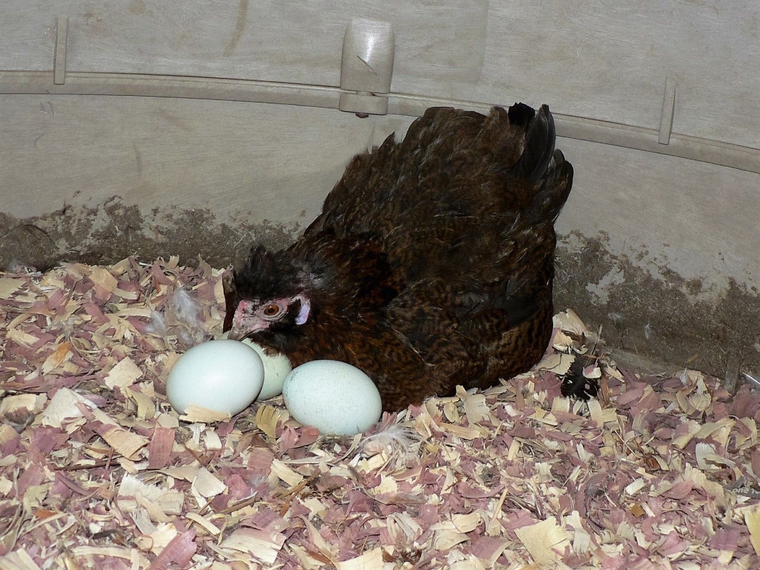 Cressa won't break, so I did. she took all 3. all are blue large fowl eggs