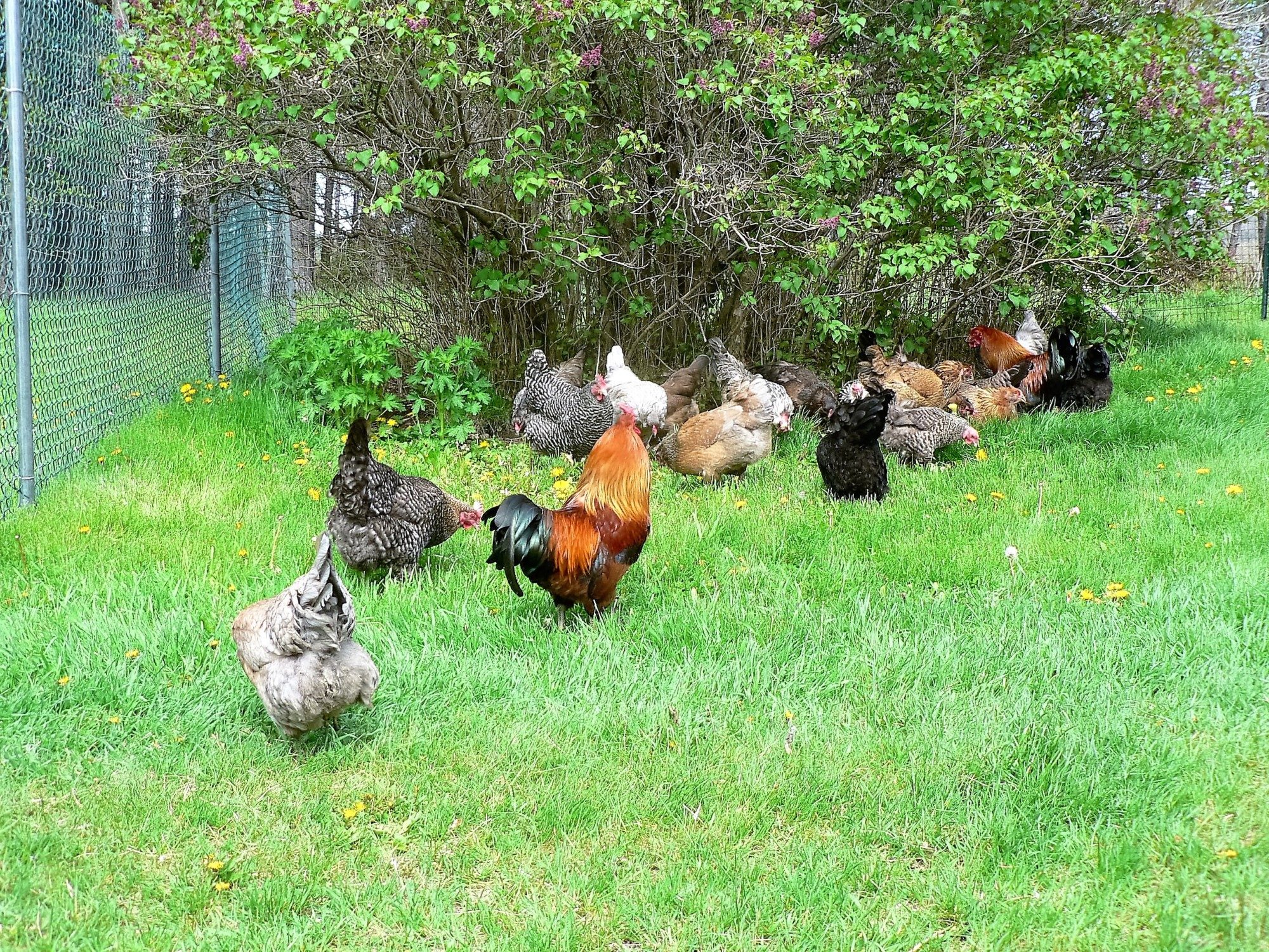 so for now, no more wrap around driveway, no shortcuts through the yard... but it's really relaxing. I don't have to worry about hawks. I have a lot of crows who chase them away. I hardly see hawks here... it is the opportunistic fox or coyote that now can't just snatch and dash if I have to step inside for a minute or two, or even turn my back to see where a certain group is... they'll still be supervised. and omg, getting them to go home was so easy... the bantams can't play ring around the back pen and the Dome Dweller's can't dash down the driveway and play ring around my Jeep.