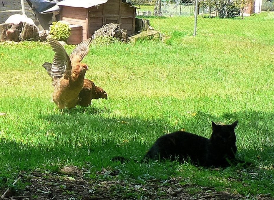 That one little chick was sure enjoying the sunshine. So glad you got the fence up. Everyone is happier!