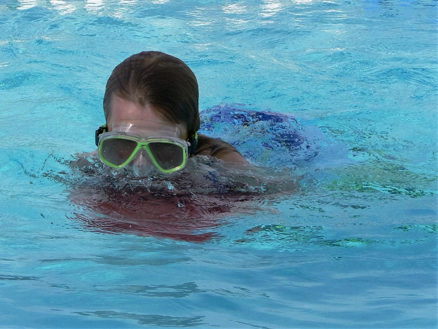 the nose cover is what broke her fear of putting her face in the water. I've created a Monster... what my mother called me...? Water Rat.